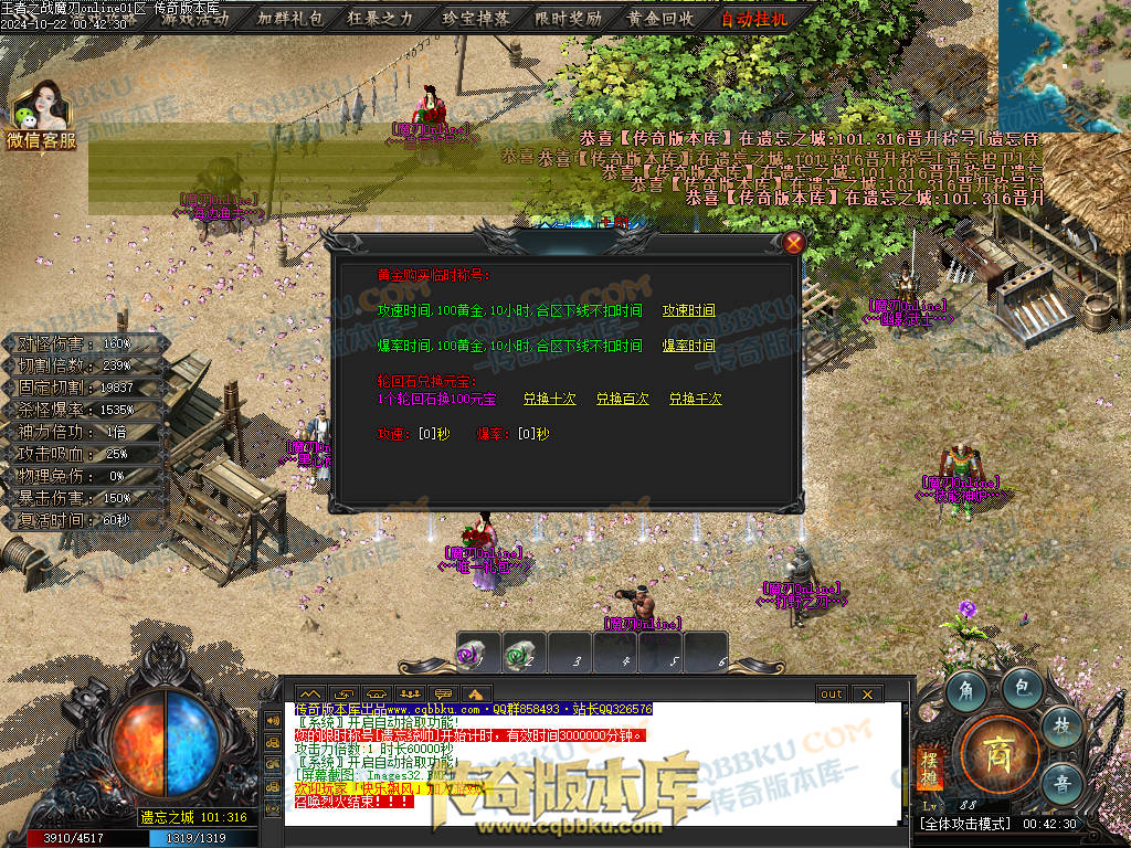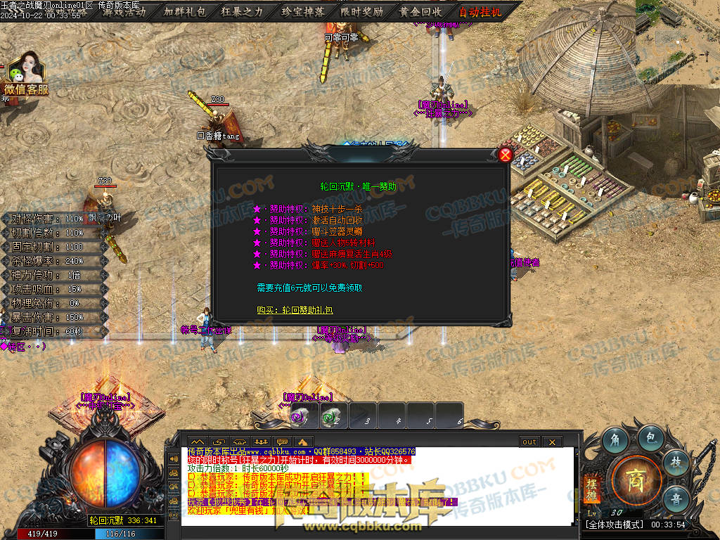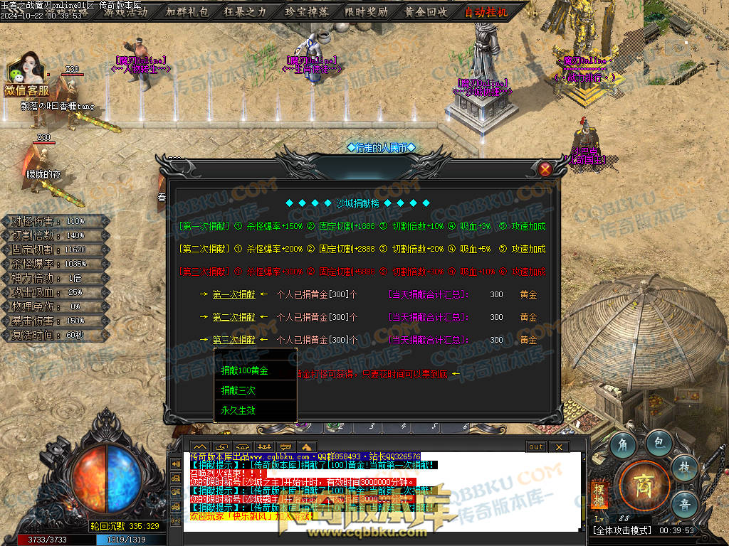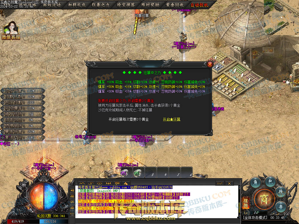 基础 消费:沙捐300黄金 狂暴50黄金!!!!