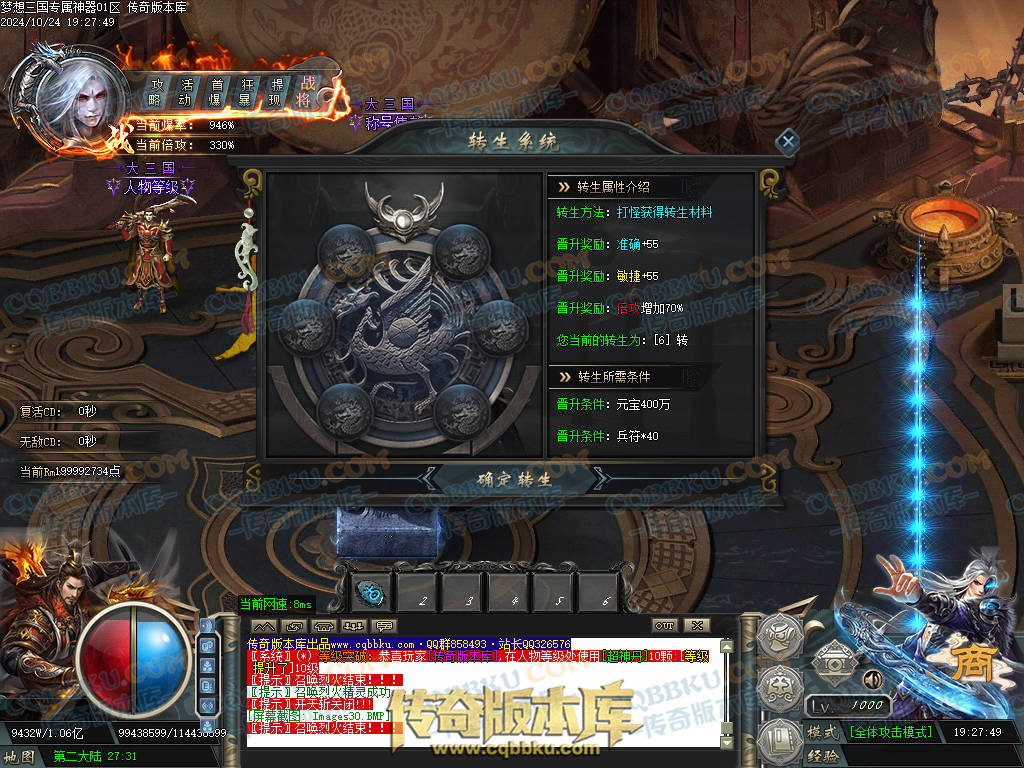 上线加群领取新手礼包获得刀刀切割50W,下地图直接撸怪,迅速到5转,打金币、银两、材料都可以卖给老板。
