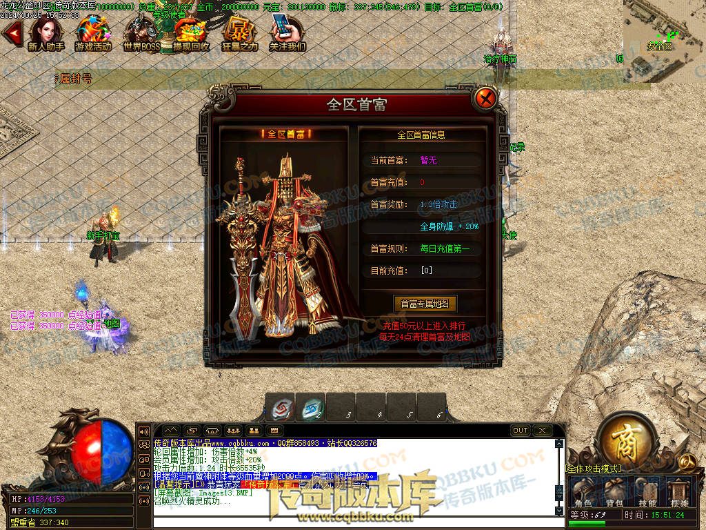 01-122独家龙龙公益复古单职业传奇版本-带假人-全区首富-首杀奖励-等级越高-爆率越高-绝无隐藏 | ||