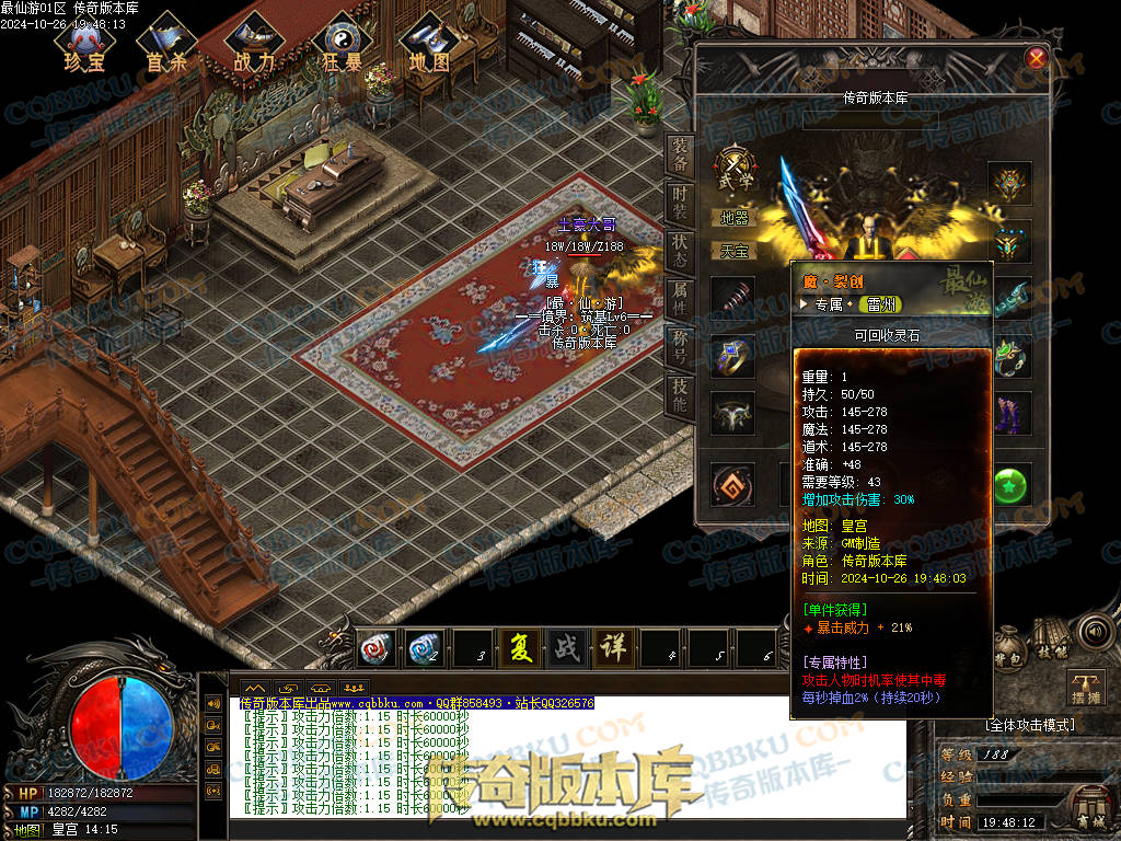 01-126独家最仙游专属沉默单职业传奇客户端-八大陆-伴侣系统-自动回收-大光柱-大背包 | ||