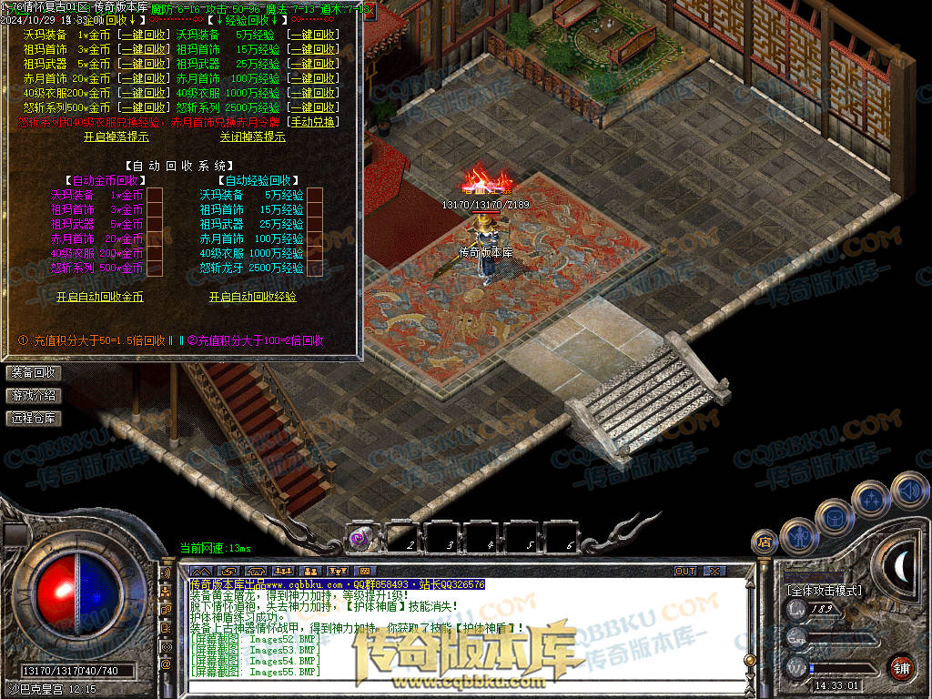 7、游戏界面左上角有在线回收和在线仓库功能,开通顶赞可以享受 1.5倍在线回收,练级打金更上一层楼