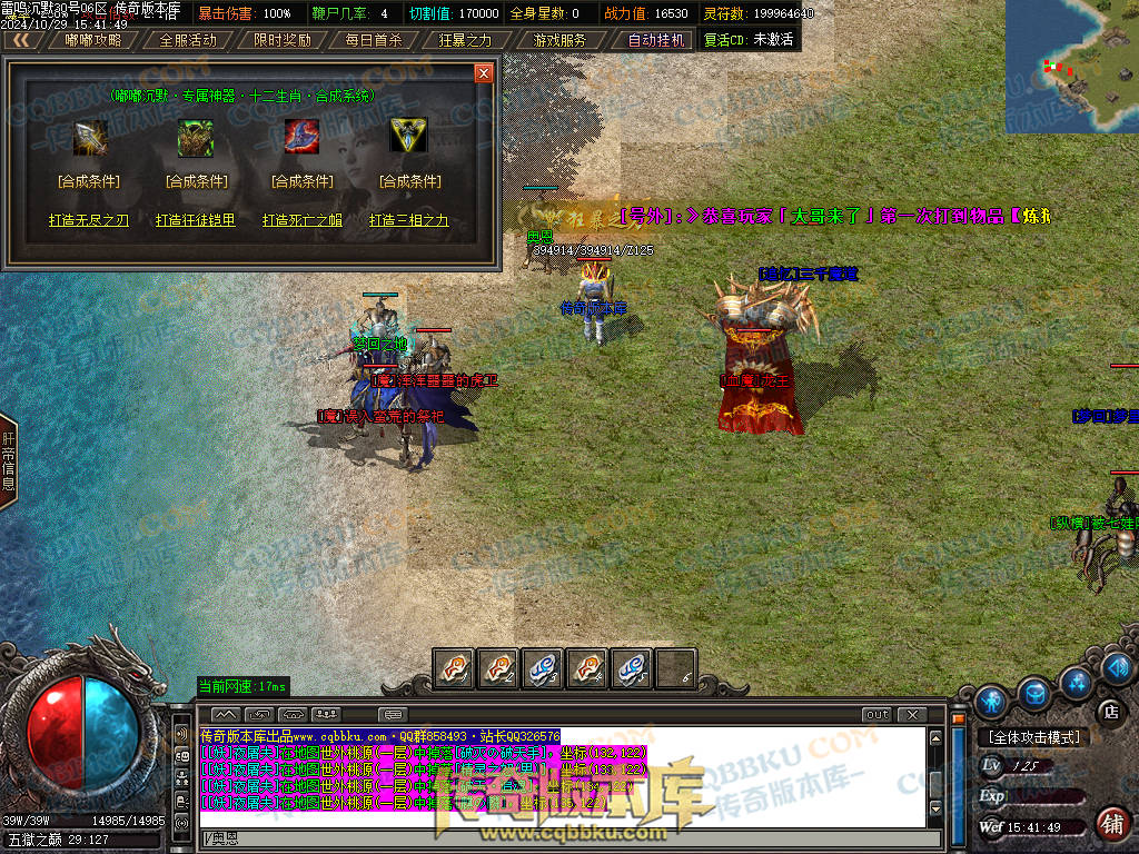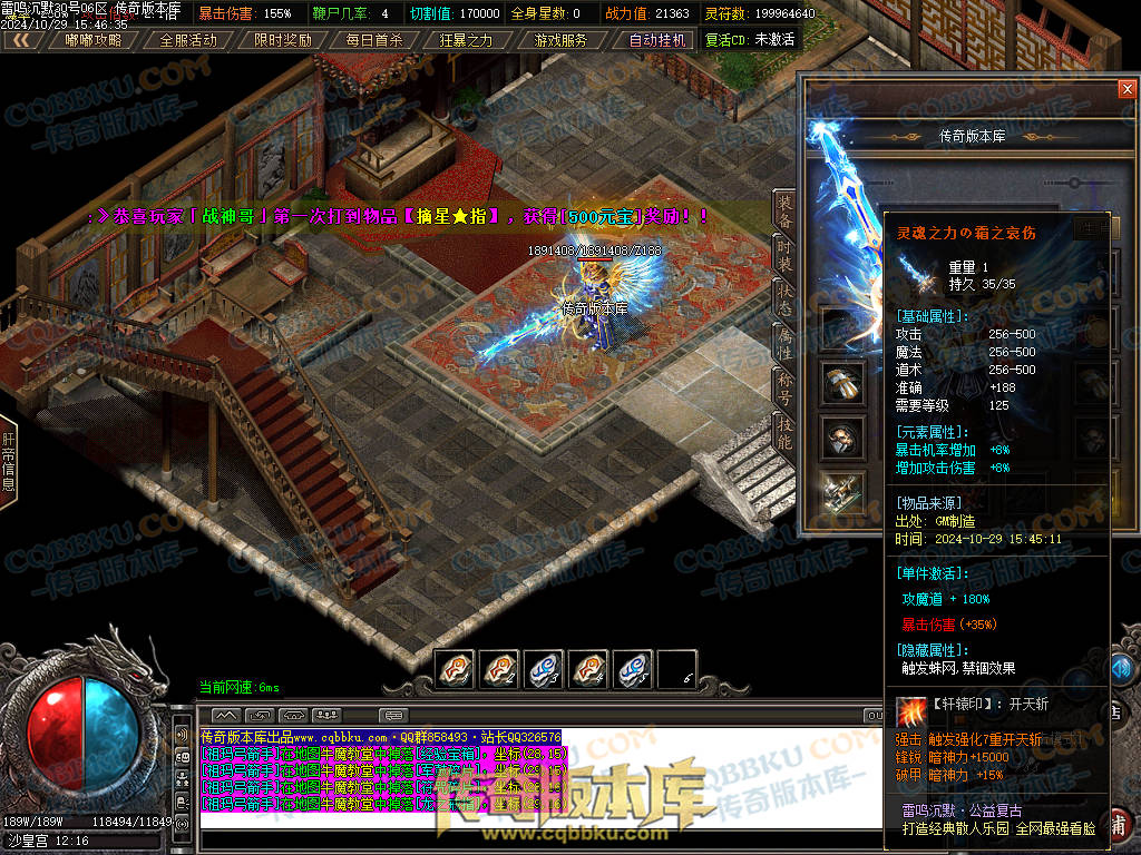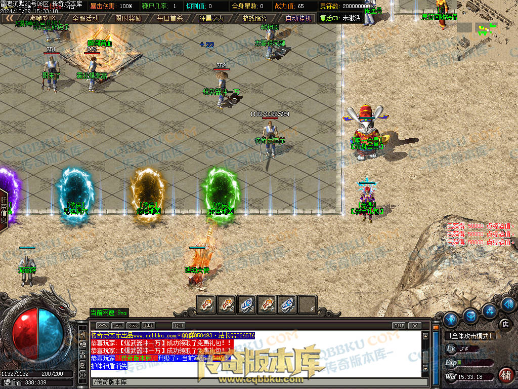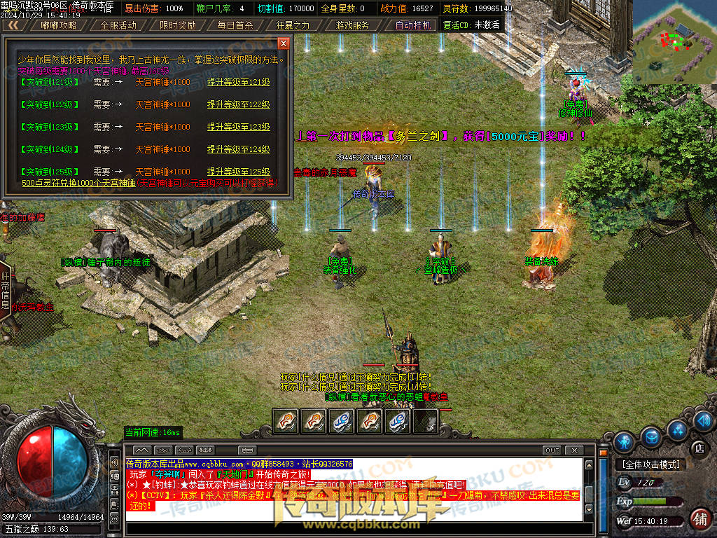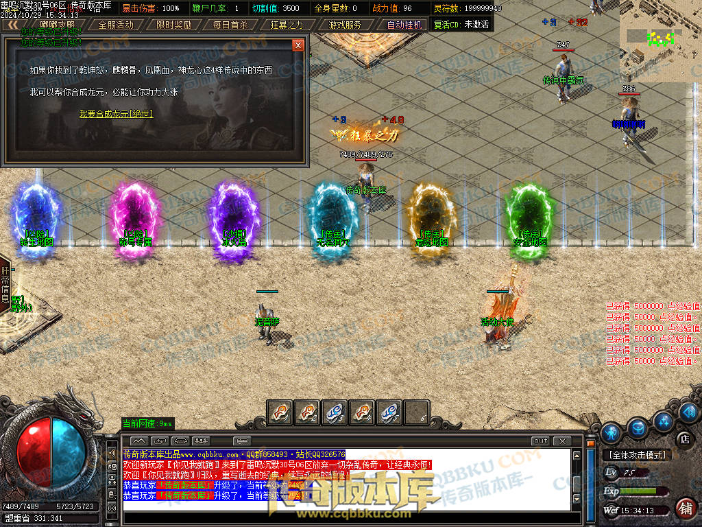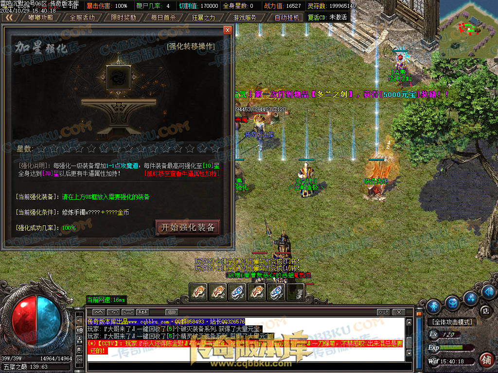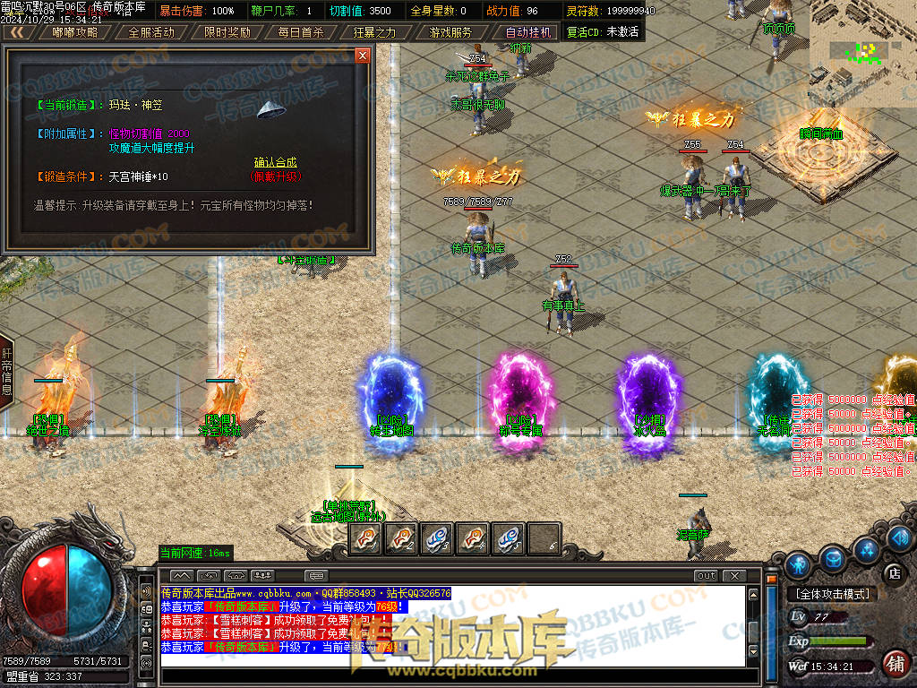 PS:本服元宝金币只能靠打,所有材料靠打,装备无合成!