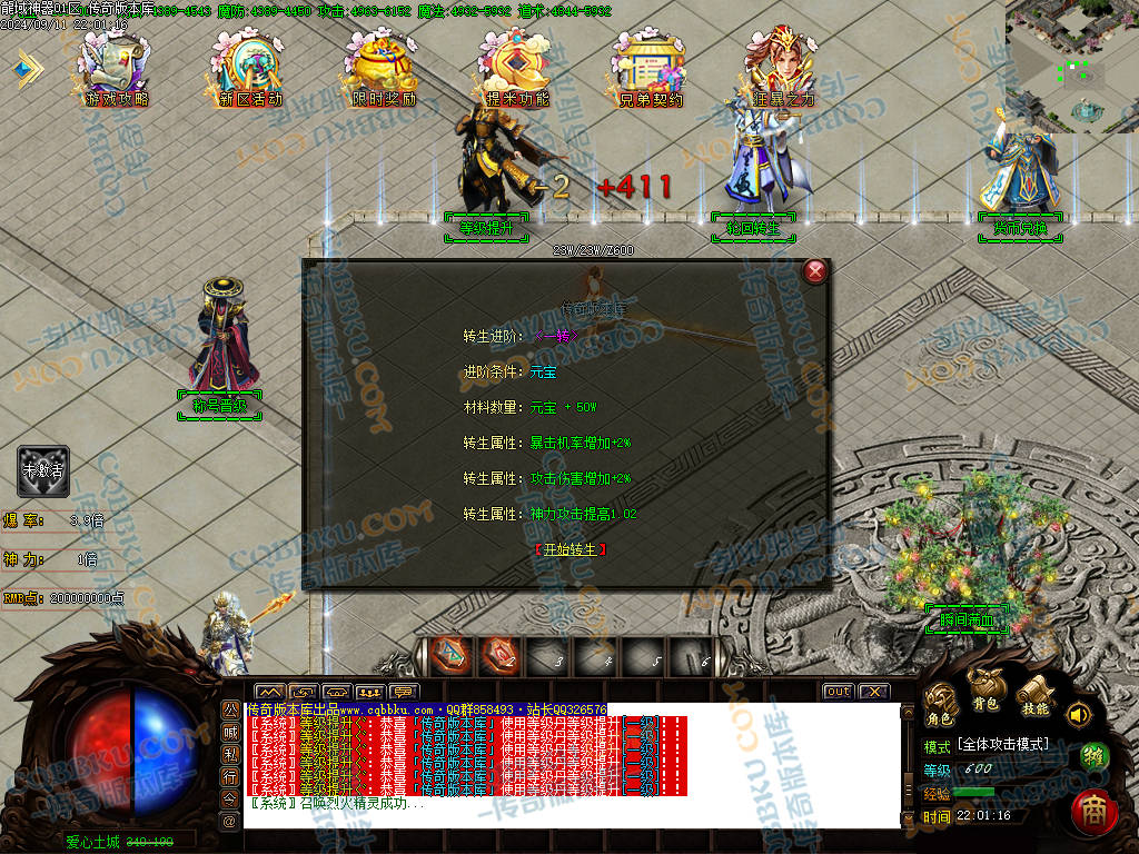 转生:最高转生20转 渡劫:最高渡劫为6层