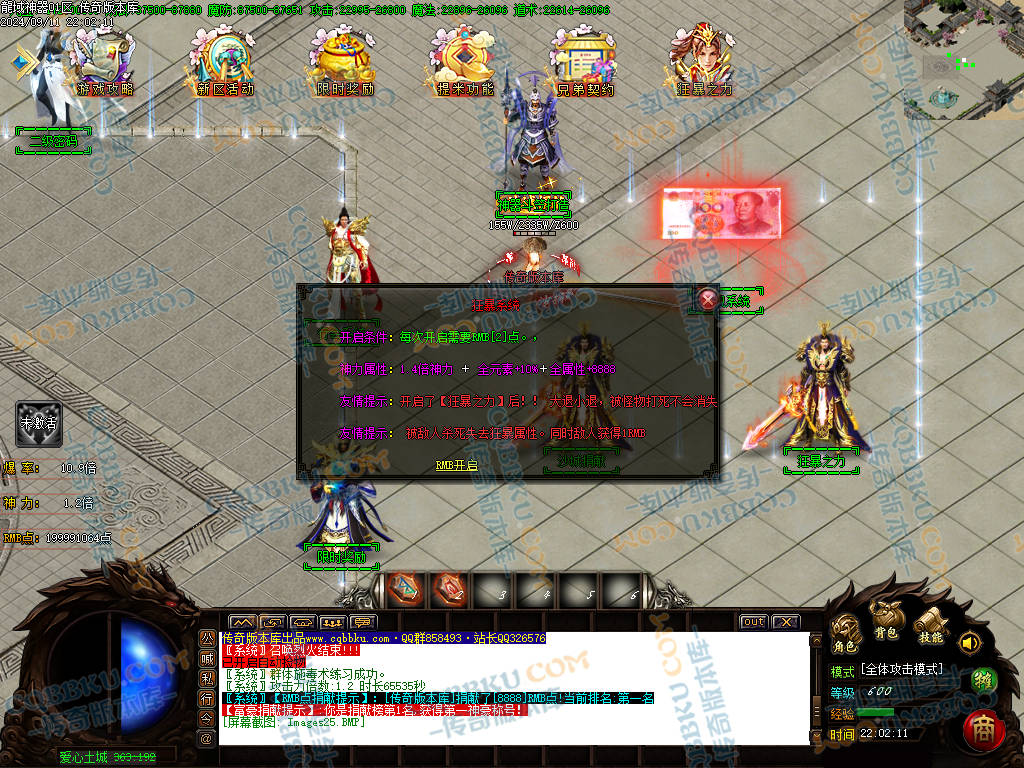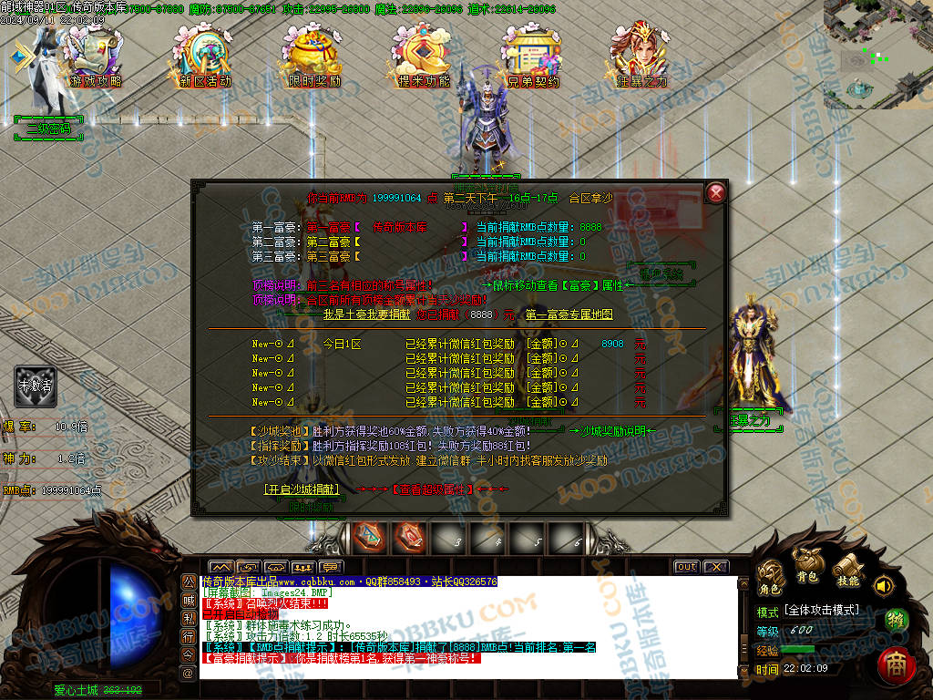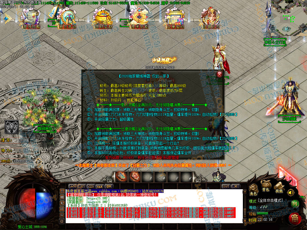 ②:开启捐献(刀刀冰冻怪物。刀刀切割怪物1111W血量。爆率提升100%。自动捡物)【20元RMB】