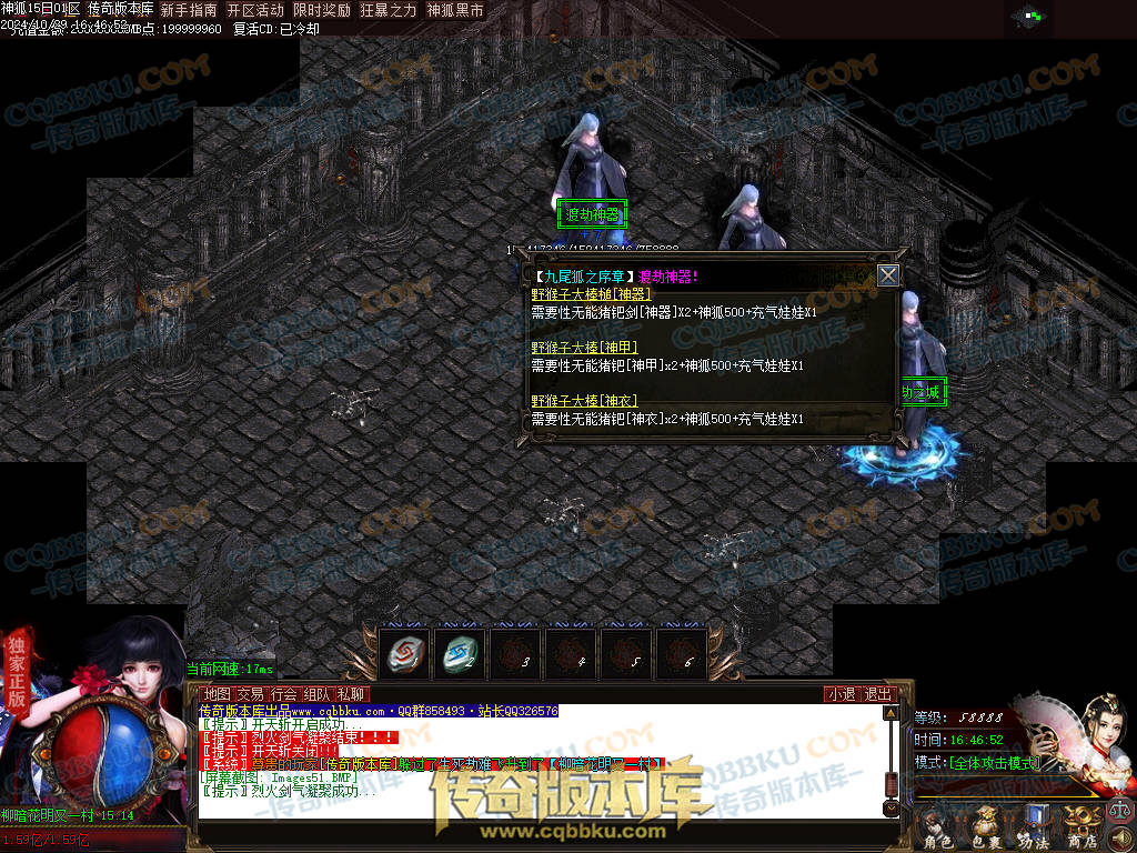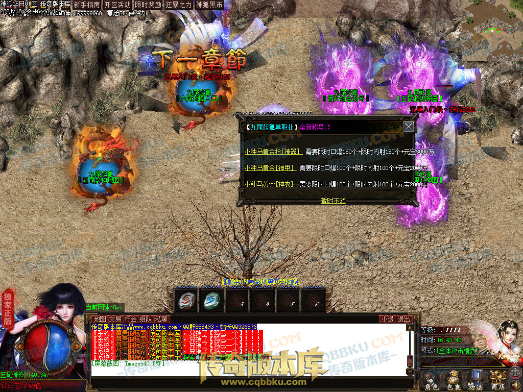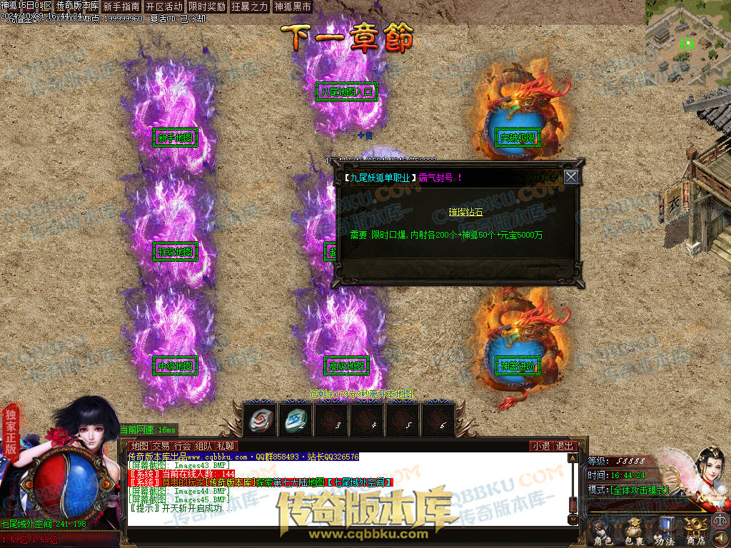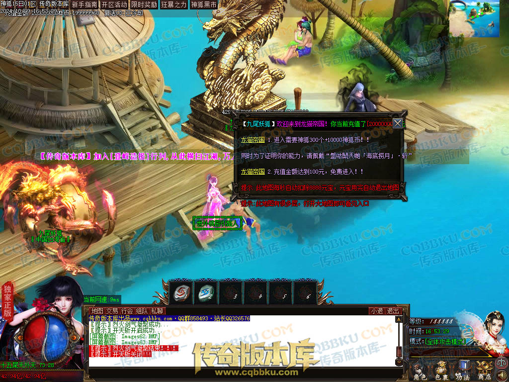 [版本介绍] :元宝:1 = 500000神狐币点:1 = 500冲制点:1 = 200网银赠送100% !