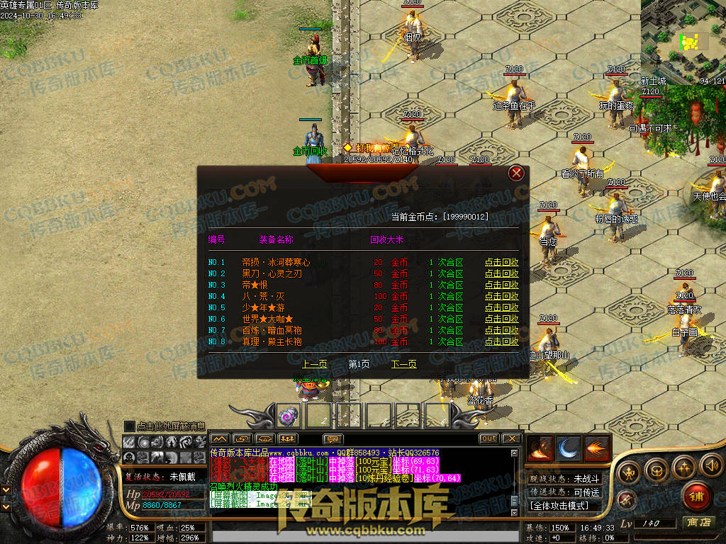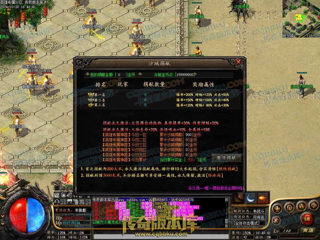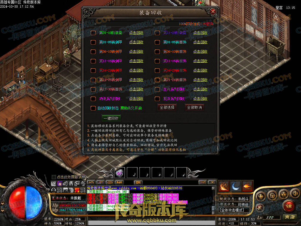 01-142独家英雄专属神器单职业传奇客户端-带假人-自动回收-带光柱-大背包-自动拾取 | ||