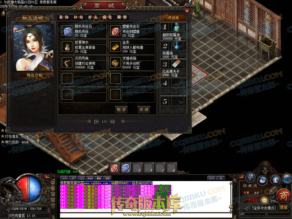 01-144独家1.76武神公益大极品单职业传奇服务端-带假人-ESP插件-自动回收-大背包-自动拾取 | ||