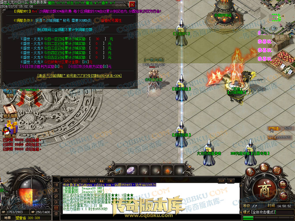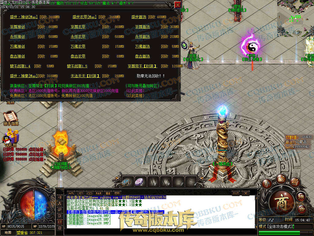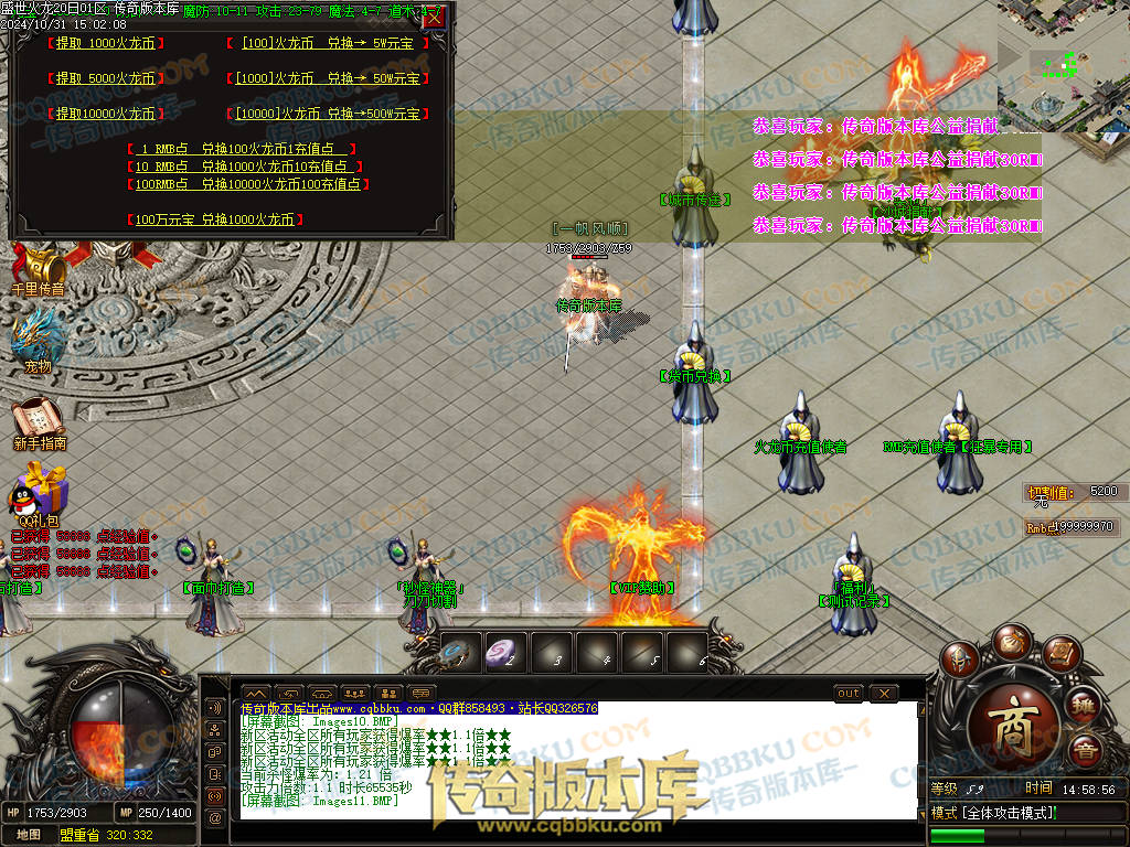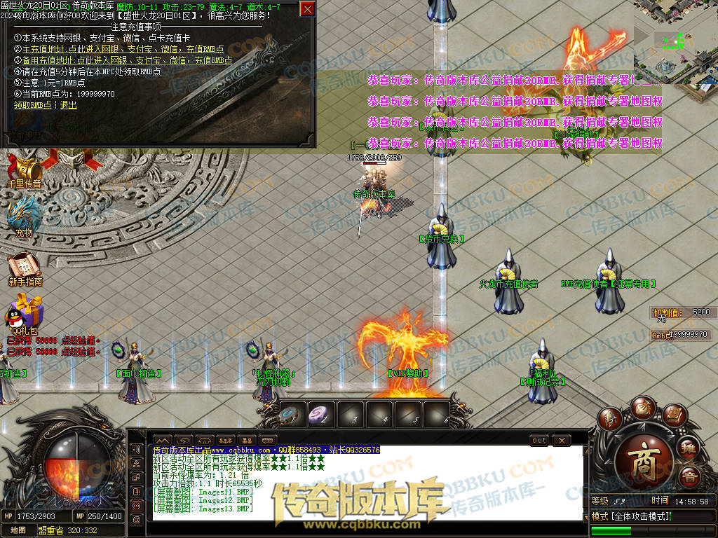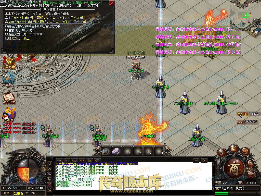 1. 游戏出售,火龙币充值比例1:300.人民币点比例1:1