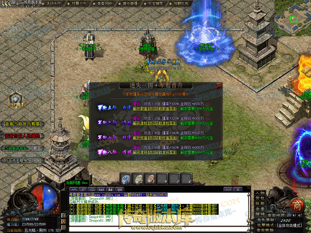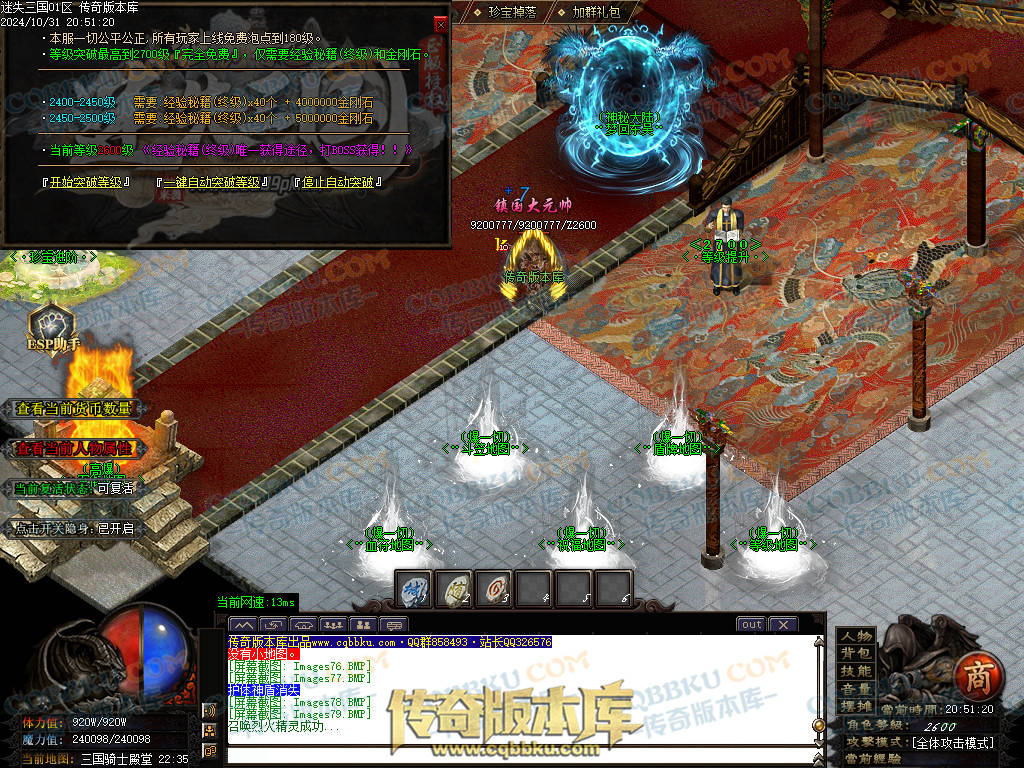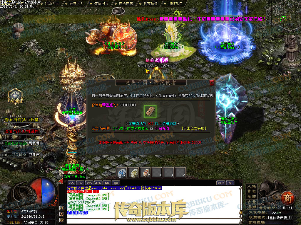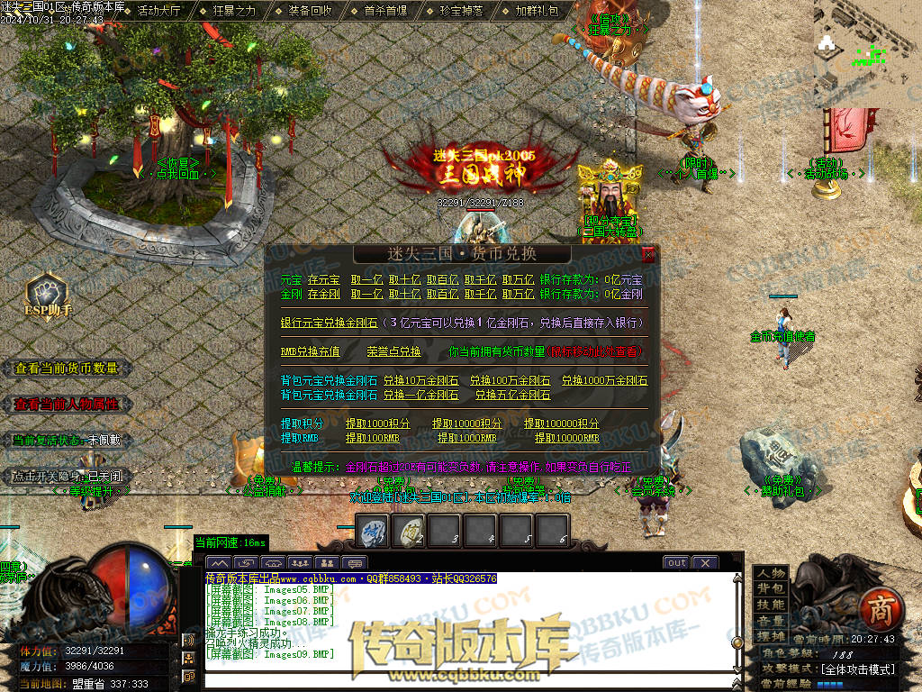 2.新增加金币地图 每30分钟刷新一次 每个地图刷新3个金币怪 平均1小时打5000-7000亿元宝+1W荣誉点