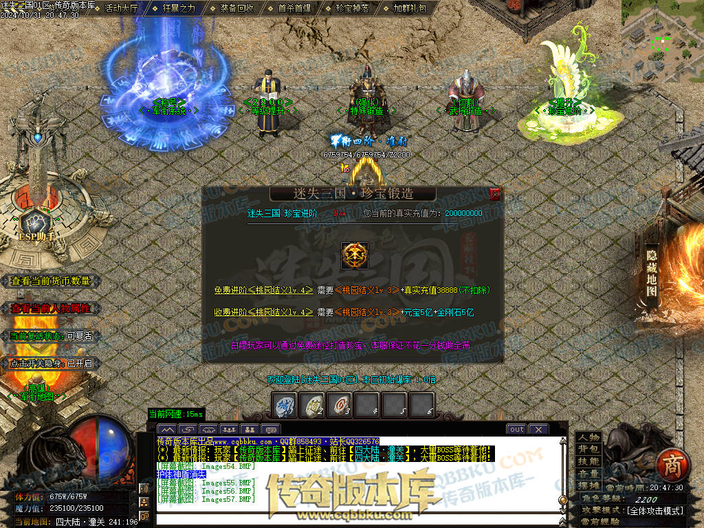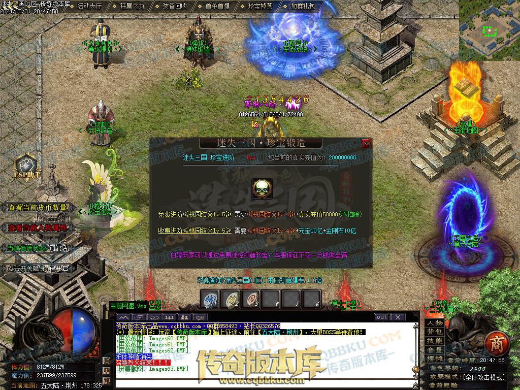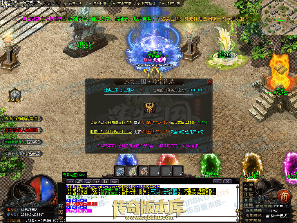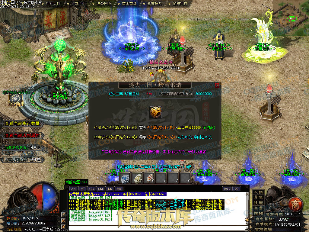 3. 积累一定元宝和金刚石 - 土城NPC合成 - 血符 - 祝福 - 斗笠 - 盾牌 - 时装 - 生肖 - 武将。可一键多项一起操作(速度一定要快)