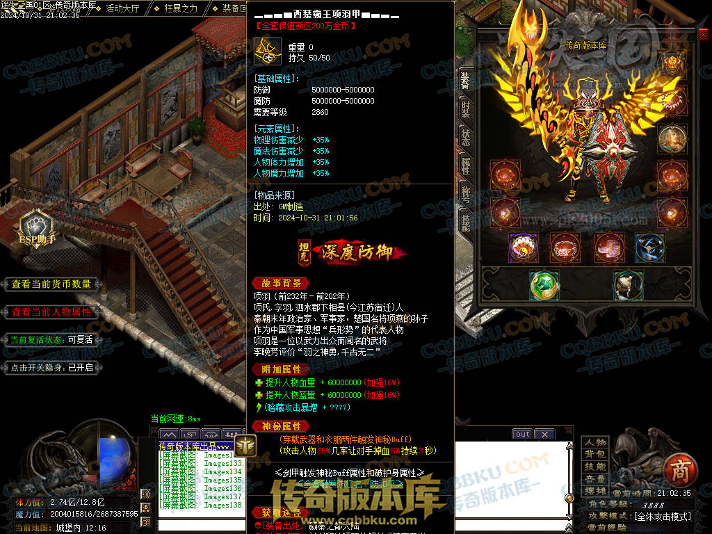 一、2860级项羽套+8.0倍攻 永久保值新区200充值 可以多帐号平分 例如2个号各转100