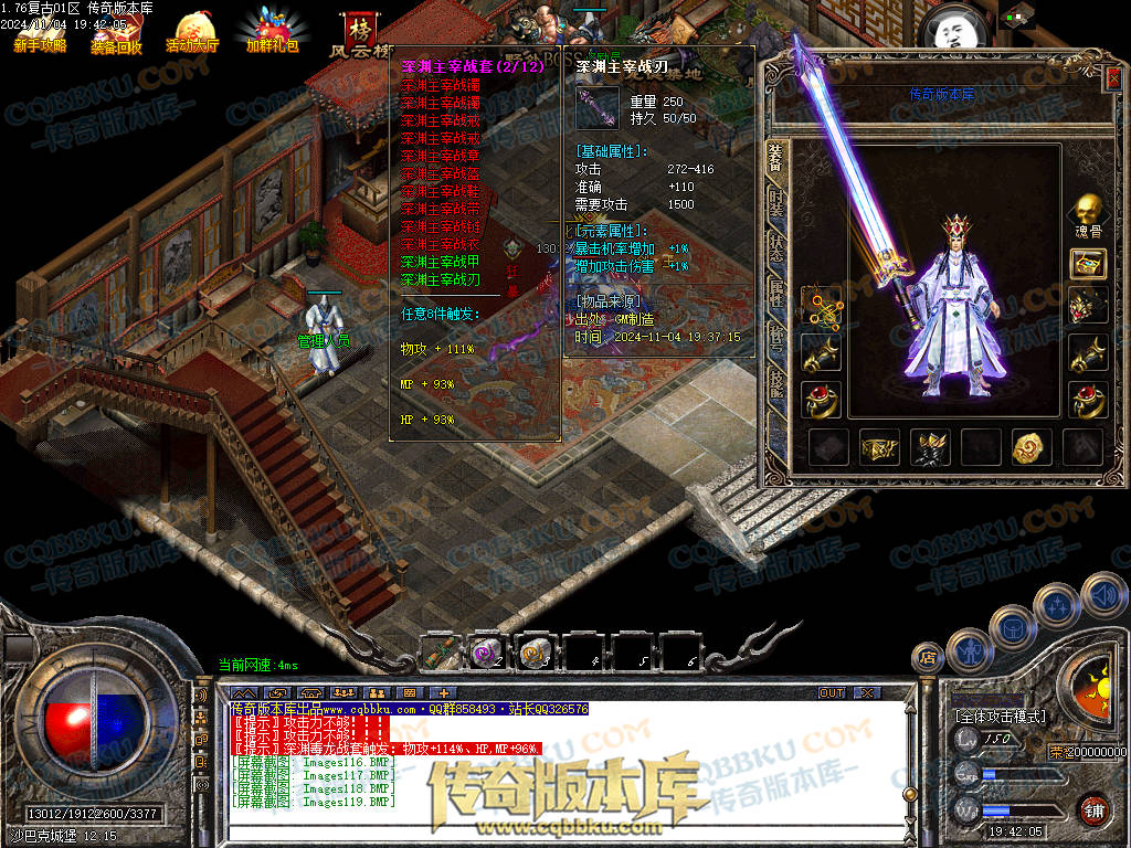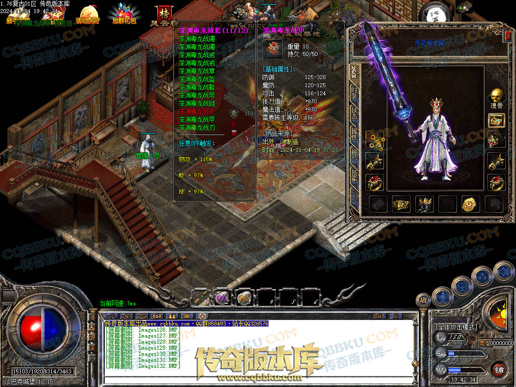 [详细介绍] : 70多套装备,三职业共计200多套,每件装备属性相差2点,不变态,可以养老半年,全地图都可以自动挂机。