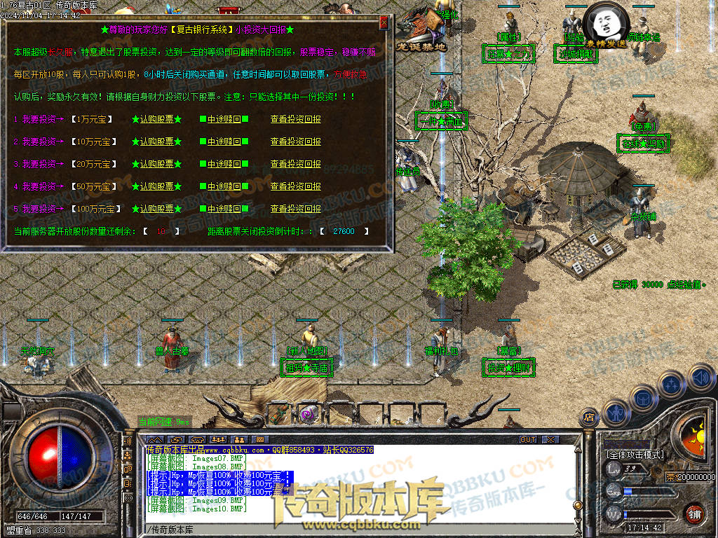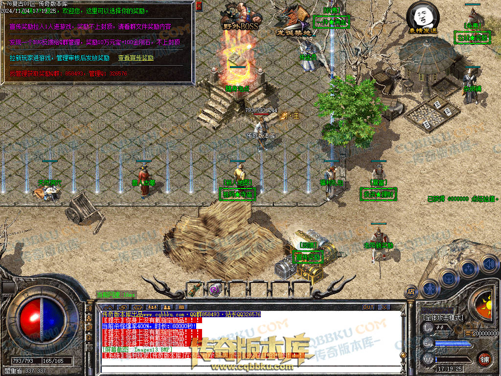 详细介绍→散人篇①:散人上线移动到土城,领取随身免费泡点,全地图都可以泡点,群里包赠送双倍泡点和魔血石。