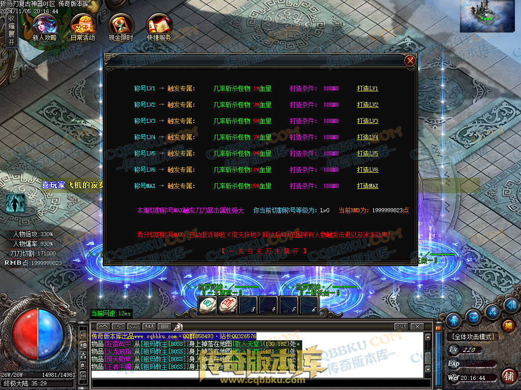 01-164独家斩马刀复古神器单职业传奇服务端-带假人-ESP插件-光柱-自动回收-大背包 | ||