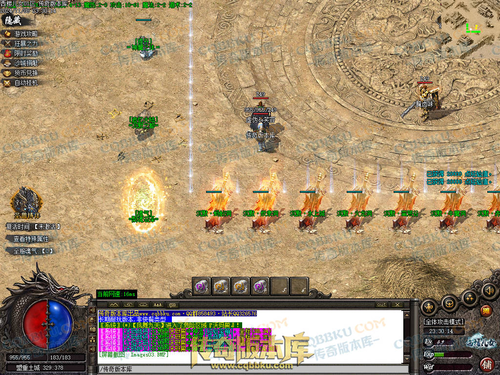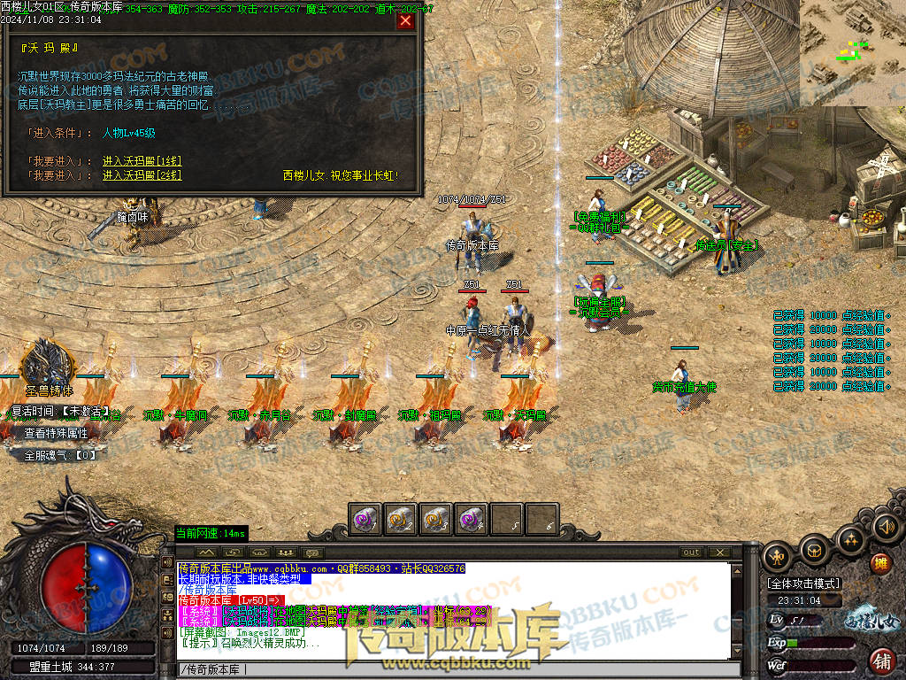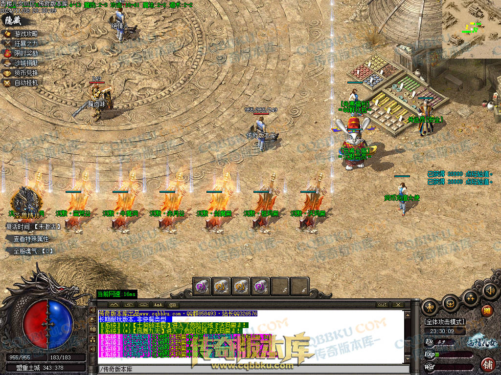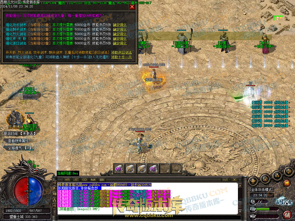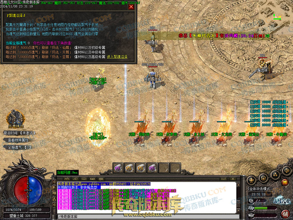 九大陆:土城-沉默之都-苍天城-神兽殿堂-神话战场-封魔古堡-比奇王国-白日道馆-终极客栈-未知!!!!