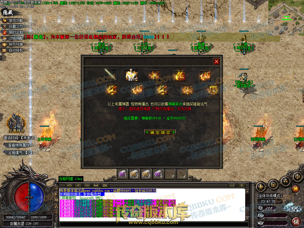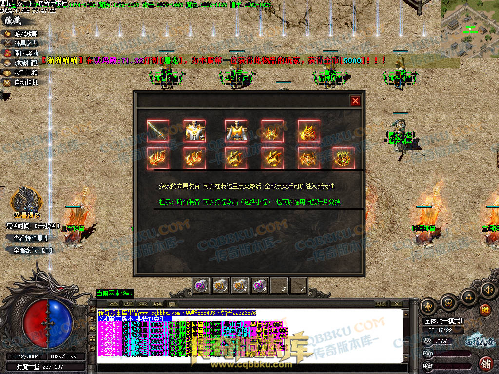 注意:所有装备专属神器 全服所有怪都爆 包括白色垃圾小怪