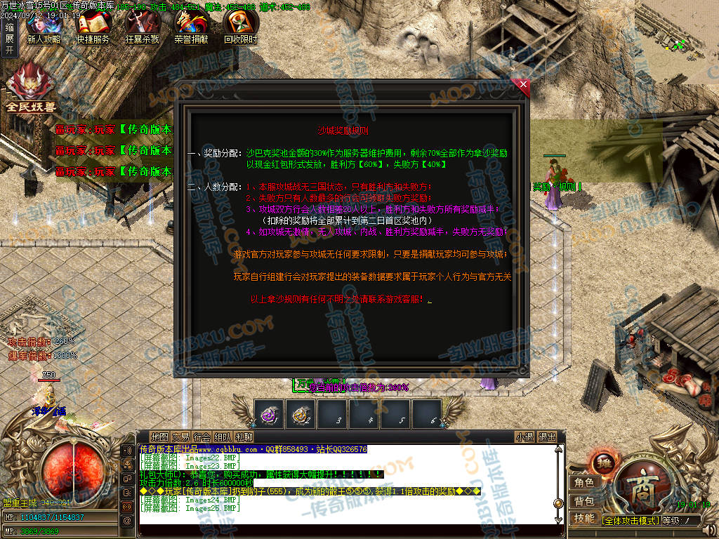 11.本服带沙巴克参与值.为防止挂水的玩家.拿沙结束检查玩家参与值来判断是否挂水!