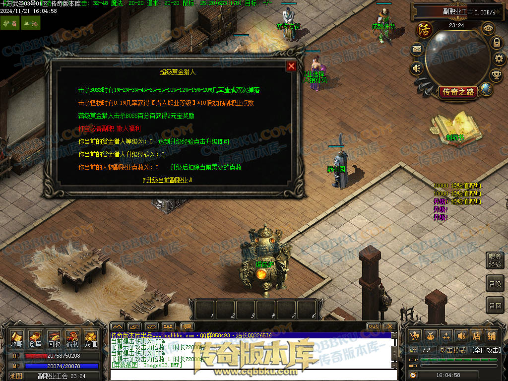 3.满级赏金猎人击杀BOSS百分百获得2元宝奖励