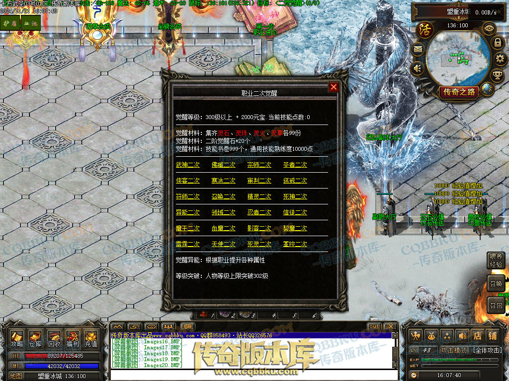 觉醒异能:根据职业提升各种属性,等级突破:—次觉醒后等级可突破到302级