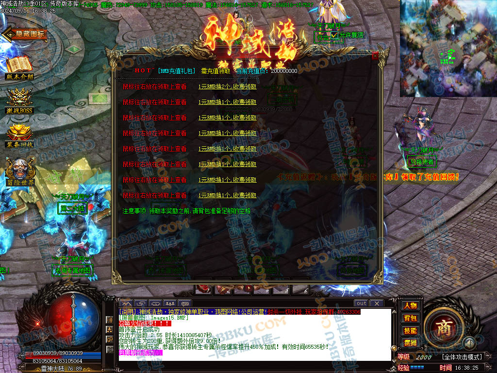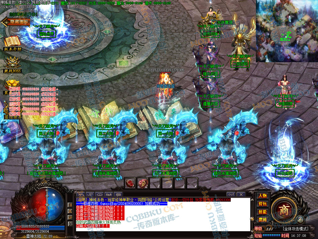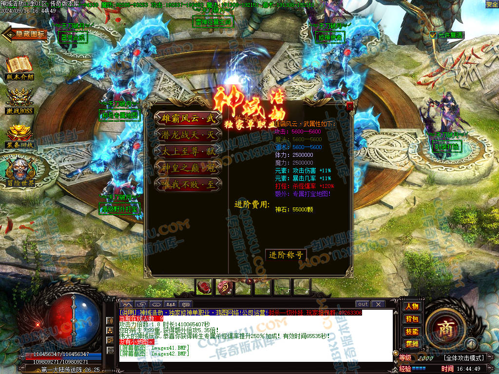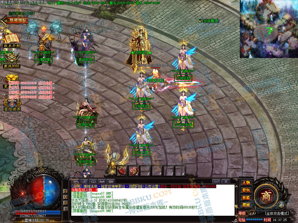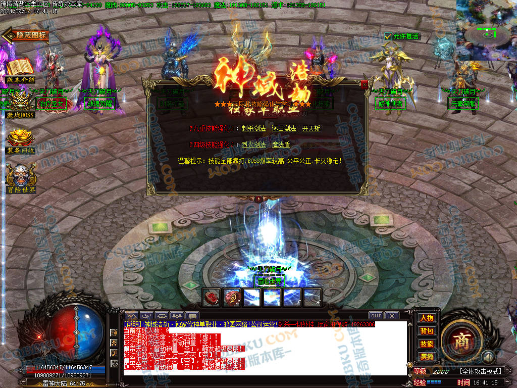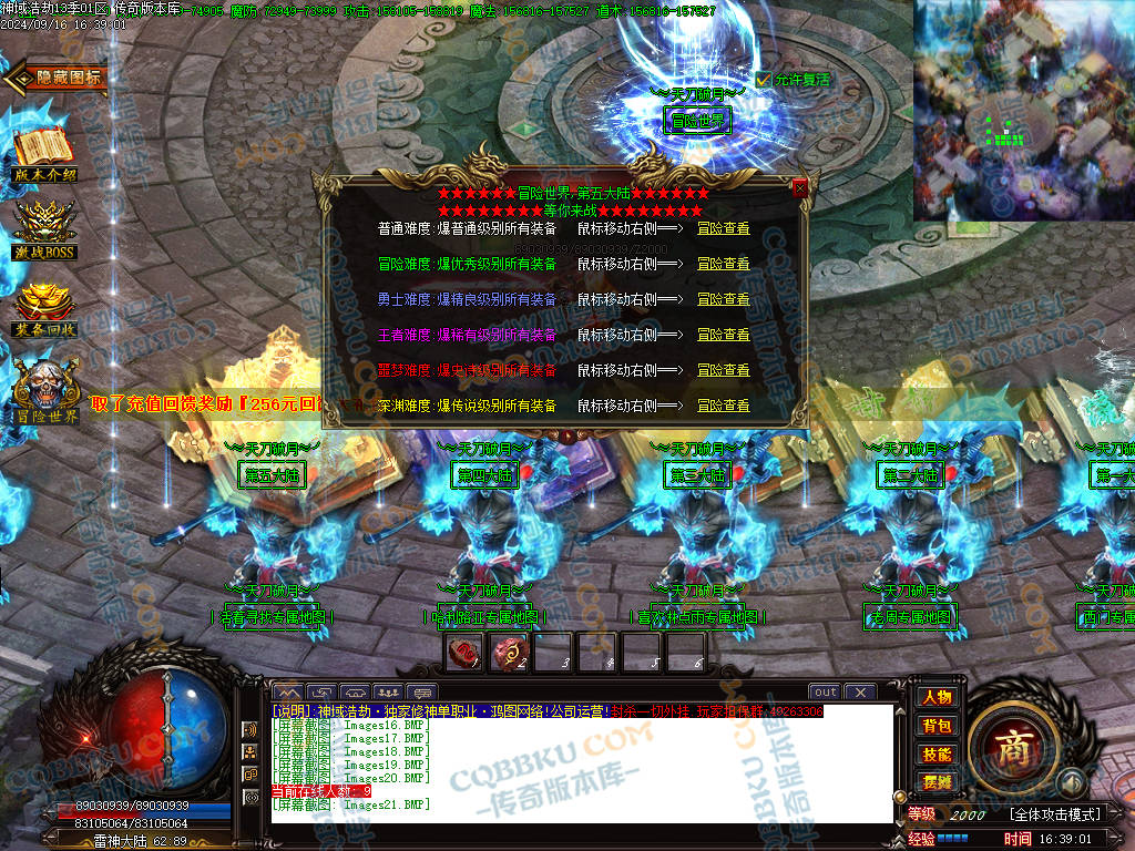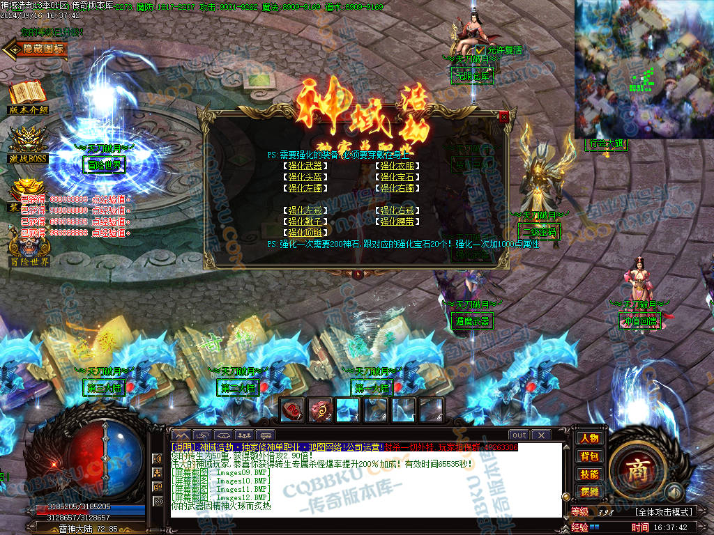 本服比奇大城,苍月岛,封魔谷,白日门刷新怪物.更有爆终极的终极BOSS刷出,刷新地点时间请进服体验!