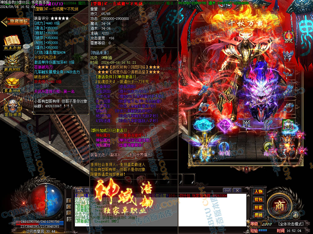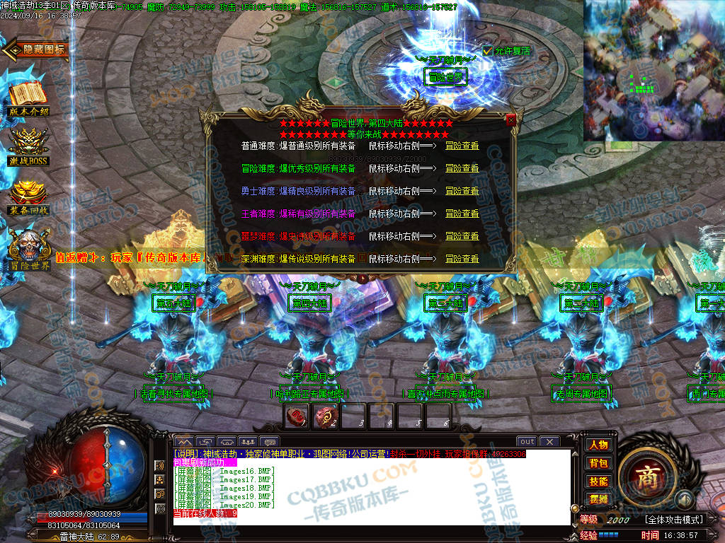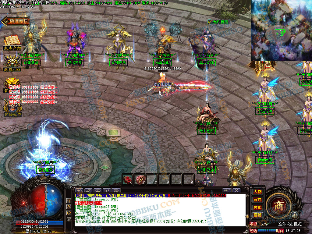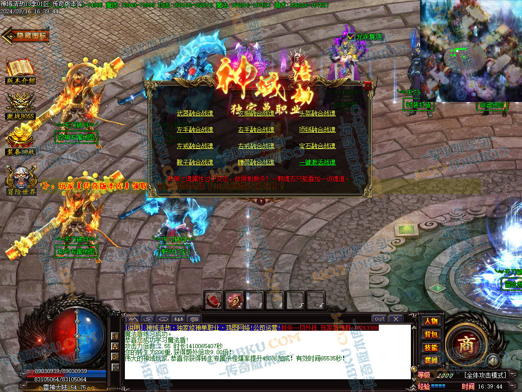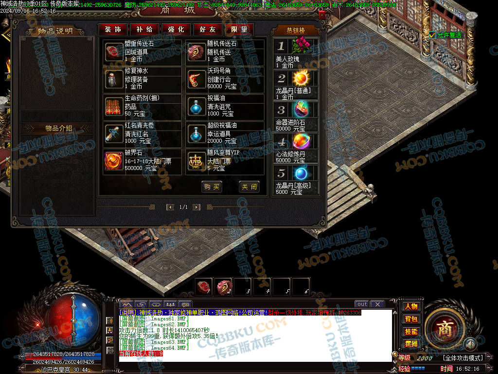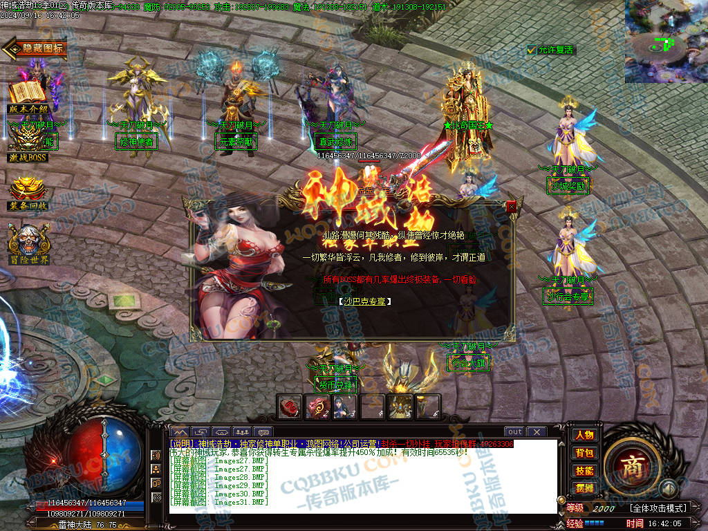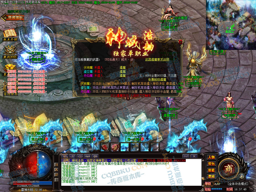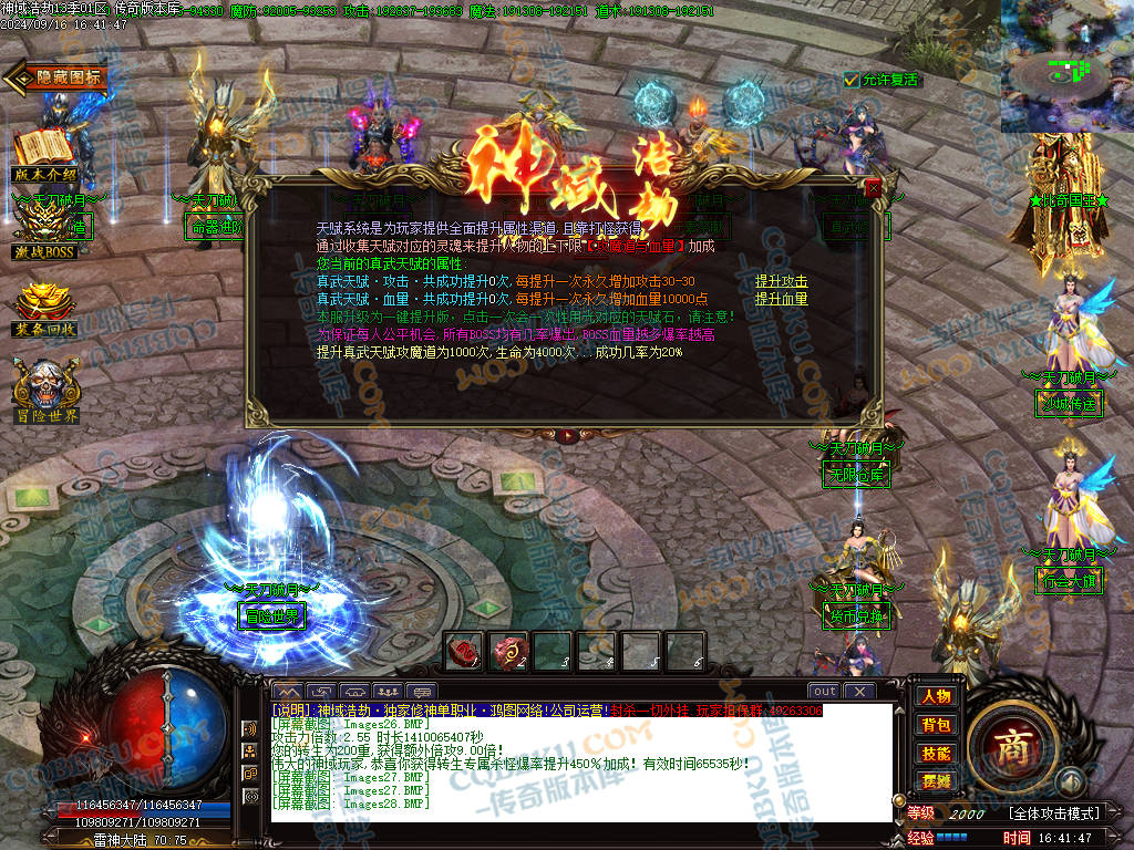 本服比奇大城,苍月岛,封魔谷,白日门刷新怪物.更有爆终极的终极BOSS刷出,刷新地点时间请进服体验!