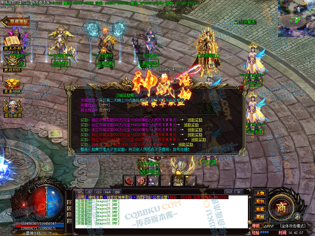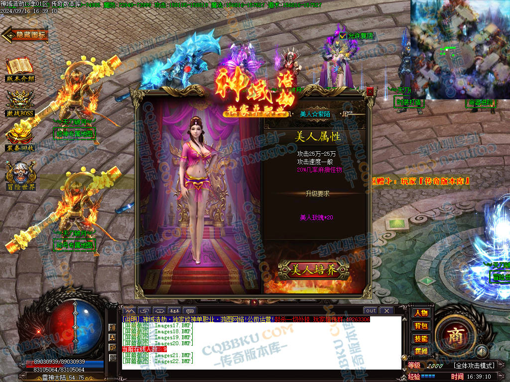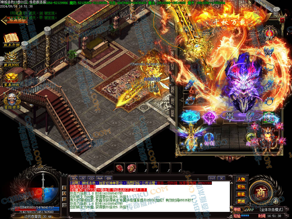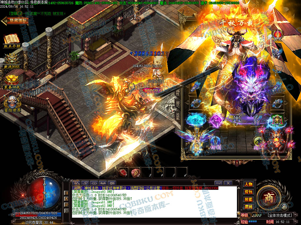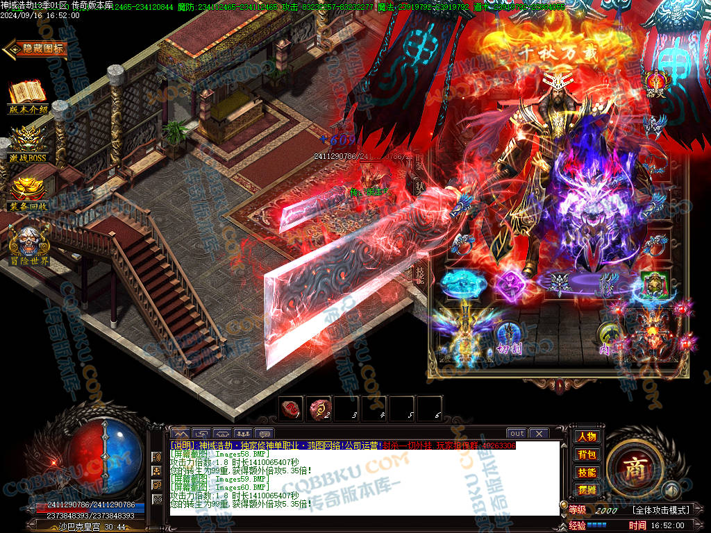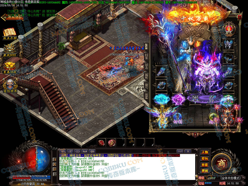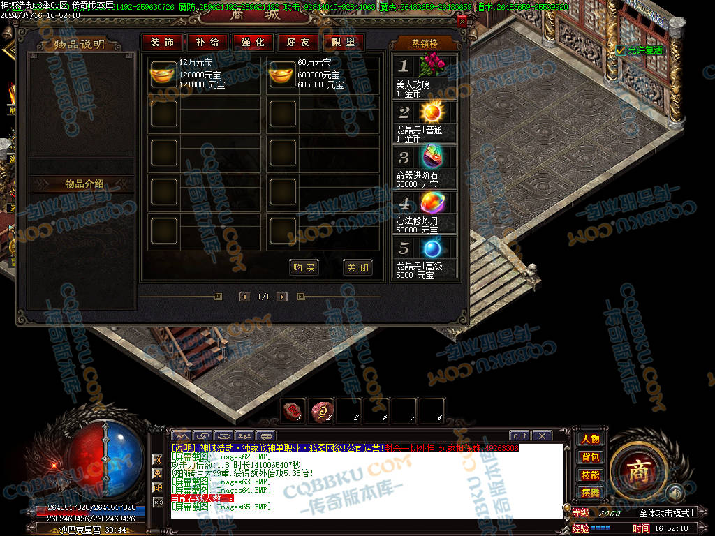 本服比奇大城,苍月岛,封魔谷,白日门刷新怪物.更有爆终极的终极BOSS刷出,刷新地点时间请进服体验!