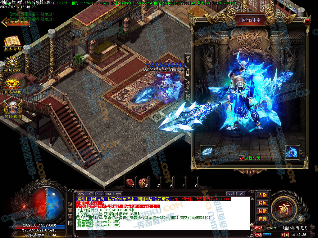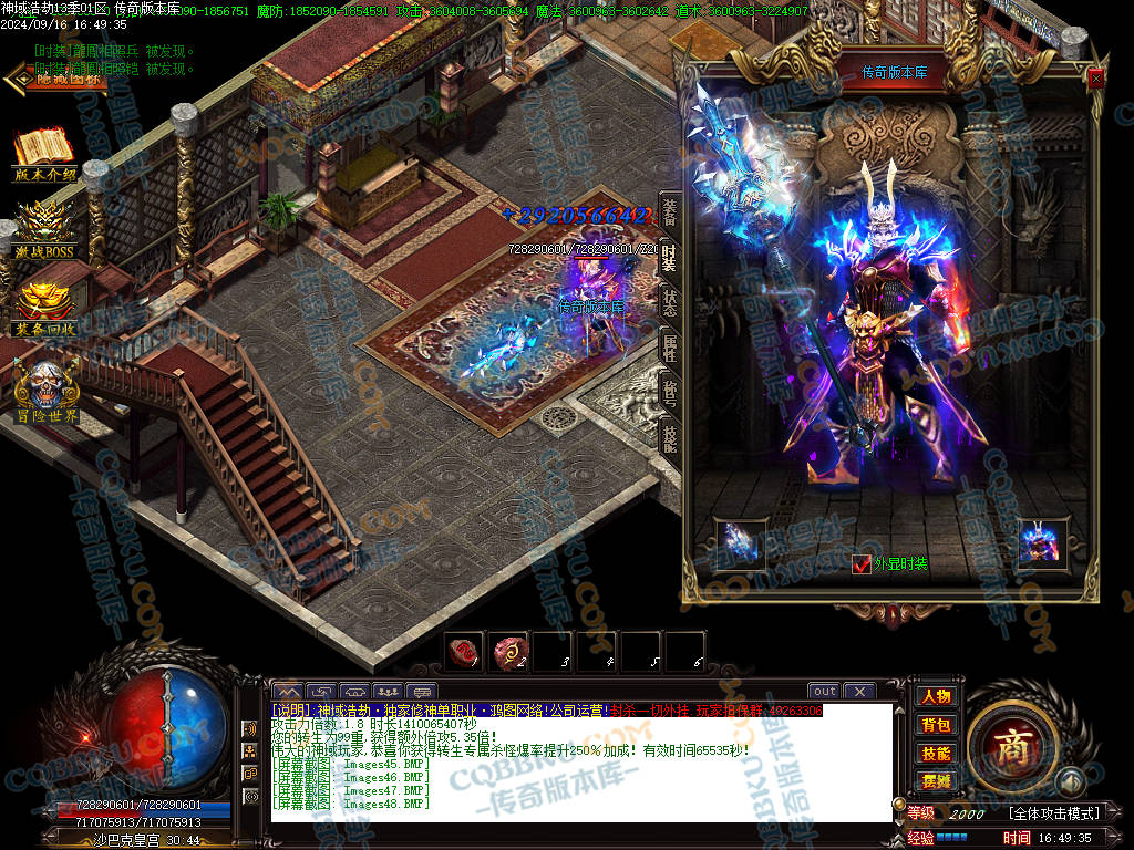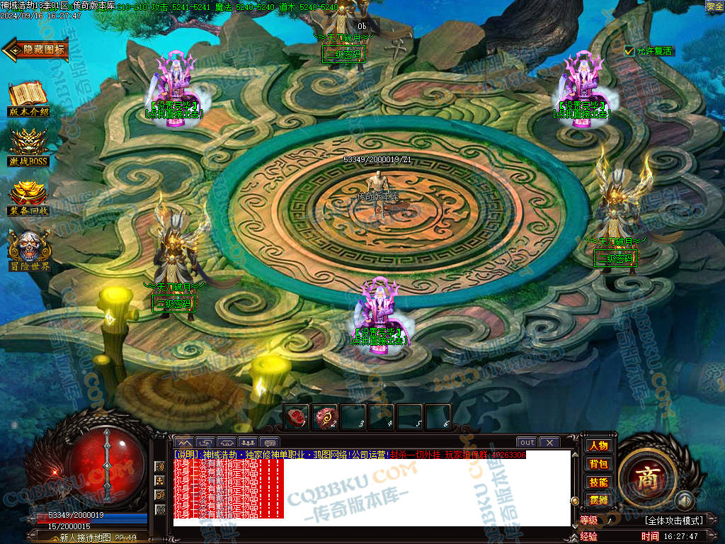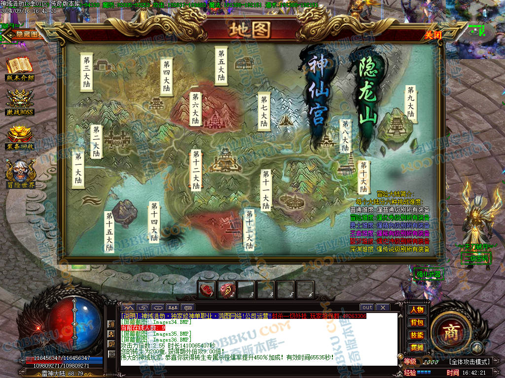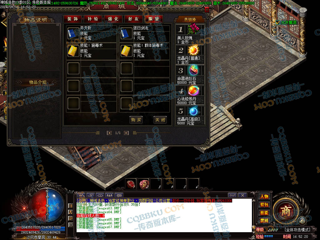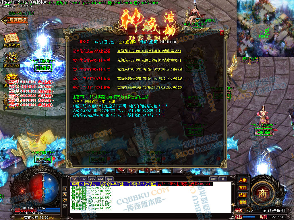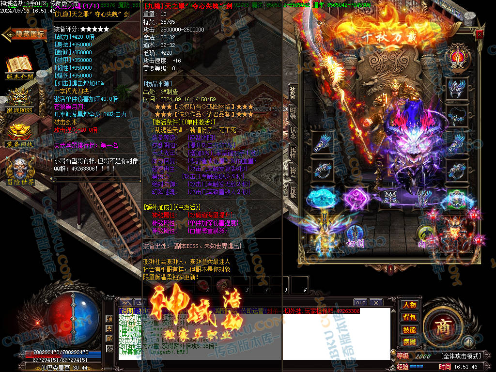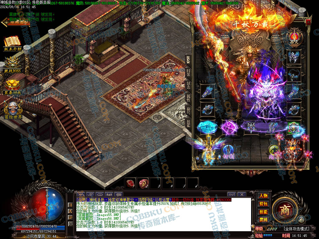 本服比奇大城,苍月岛,封魔谷,白日门刷新怪物.更有爆终极的终极BOSS刷出,刷新地点时间请进服体验!