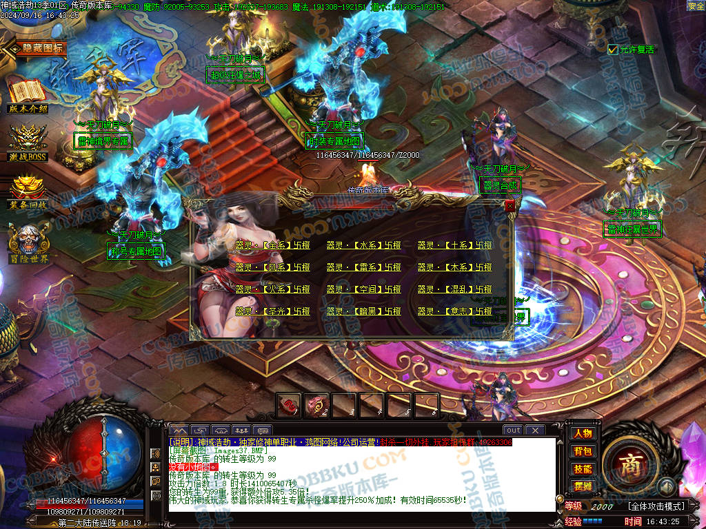 【游戏介绍】:直接进入进入一些高等级高转生地图或是一些神秘空间搞起来!比散人玩家节省无数宝贵时间!