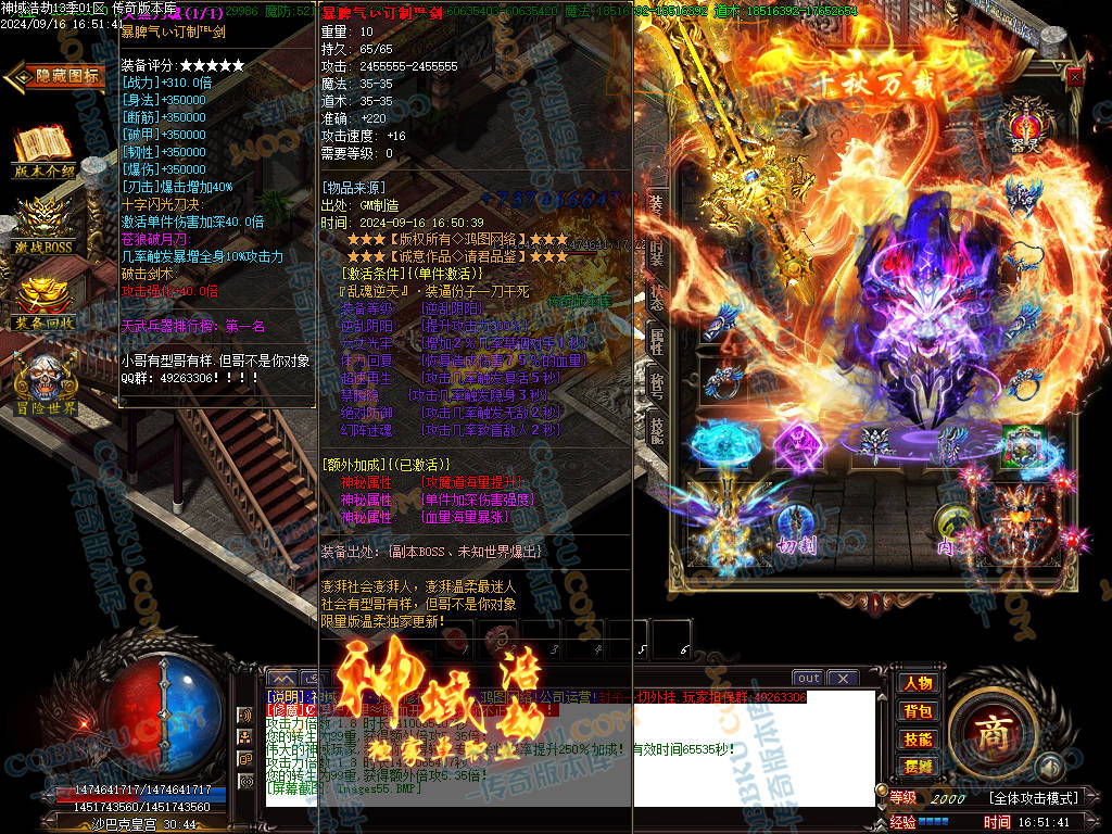 增加了800-900级地图,散人打宝神器!具体进入方式进服体验,完全免费.