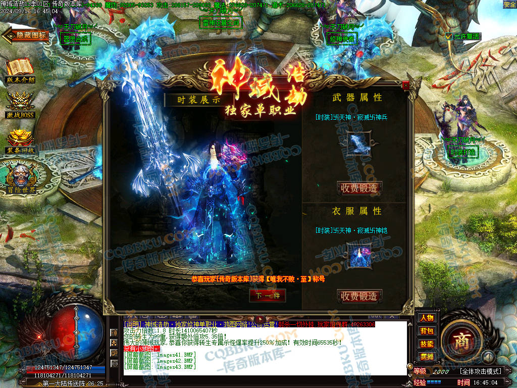 【游戏介绍】:上线送成长型神器,打怪可升级至顶级,还附带超强属性!!