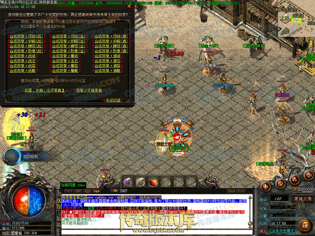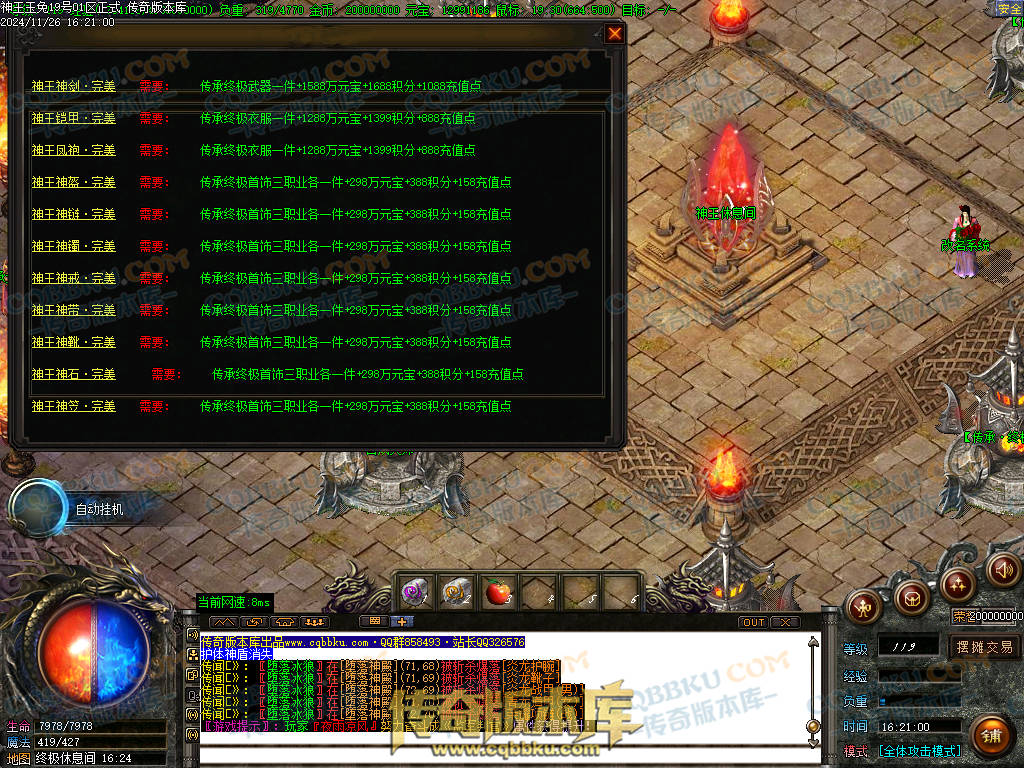 【地图介绍】:每个地图都有不同级别的BOSS都可爆终极。