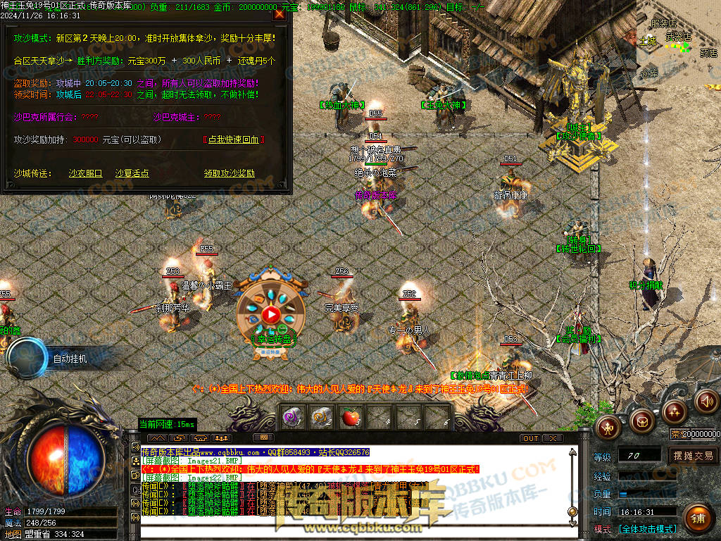 【开区模式】:每天开放五个新区。第三天合区攻沙!区区人气爆棚!