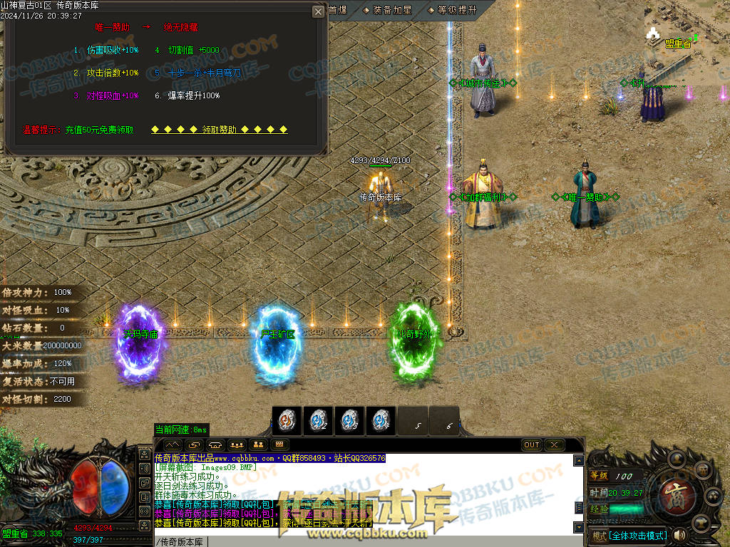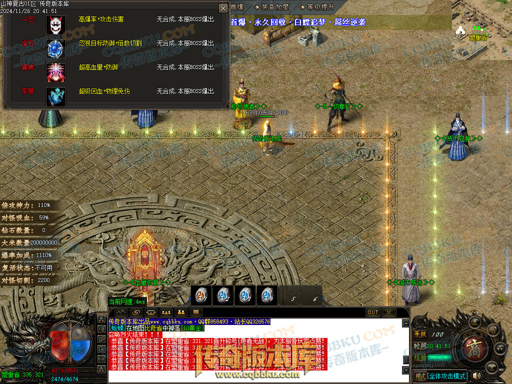版本类型:所有怪物爆终极,无合成,装备全靠爆,爆率超高,但不缺乏惊喜,英雄可以无畏,关怀必须到位