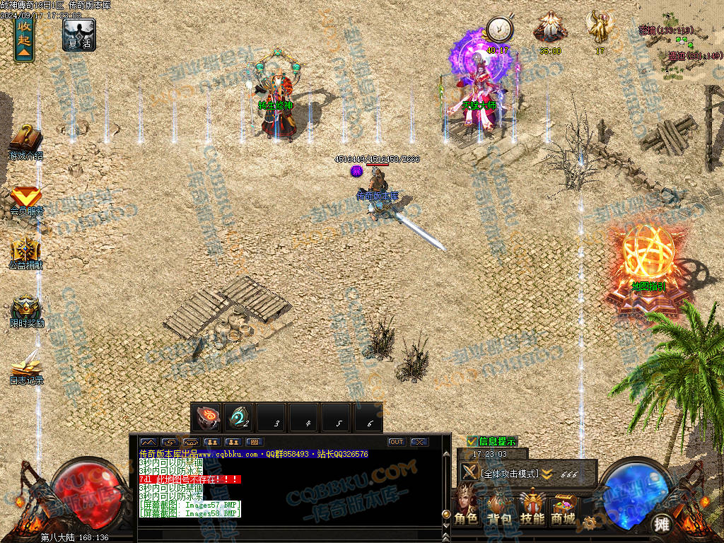 前期充值的玩家可在“打宝传送NPC—封魔禁地”发育,找个角落隔宝宝位刺杀