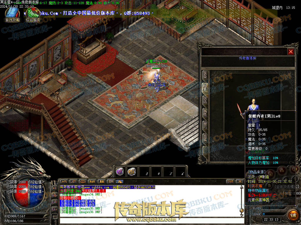 2.装备收集称号: 土城NPC(319:331)晋升.收集不同等级的装备可以获得元宝奖励的同时,获得加元素的称号