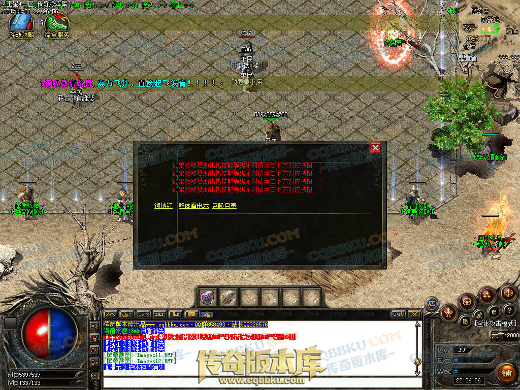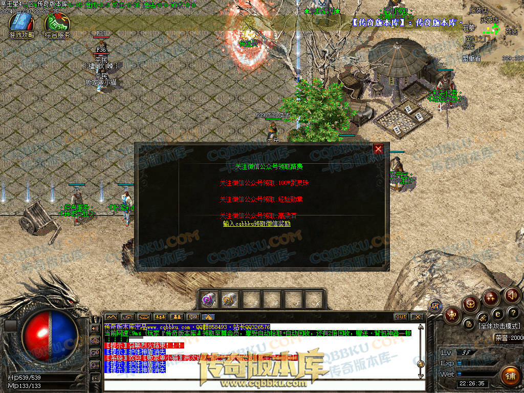 土城 339:340 位置“路费领取NPC”上线就去领取了,送的多倍经验勋章,回血神器,聚灵珠,都很实惠