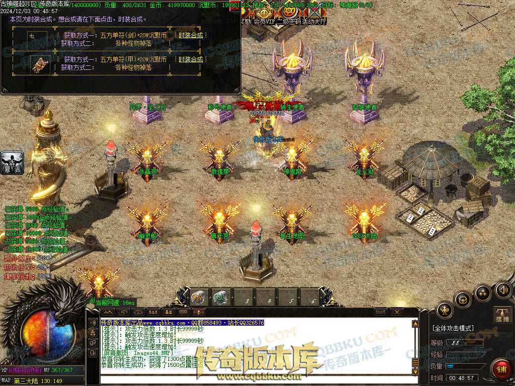 土城也可以通过NPC合成高级品阶的装备!装备可以在土左下元素鉴定处2次鉴定,装备也可以在土左上角进行装备技能镶嵌!威力更大!