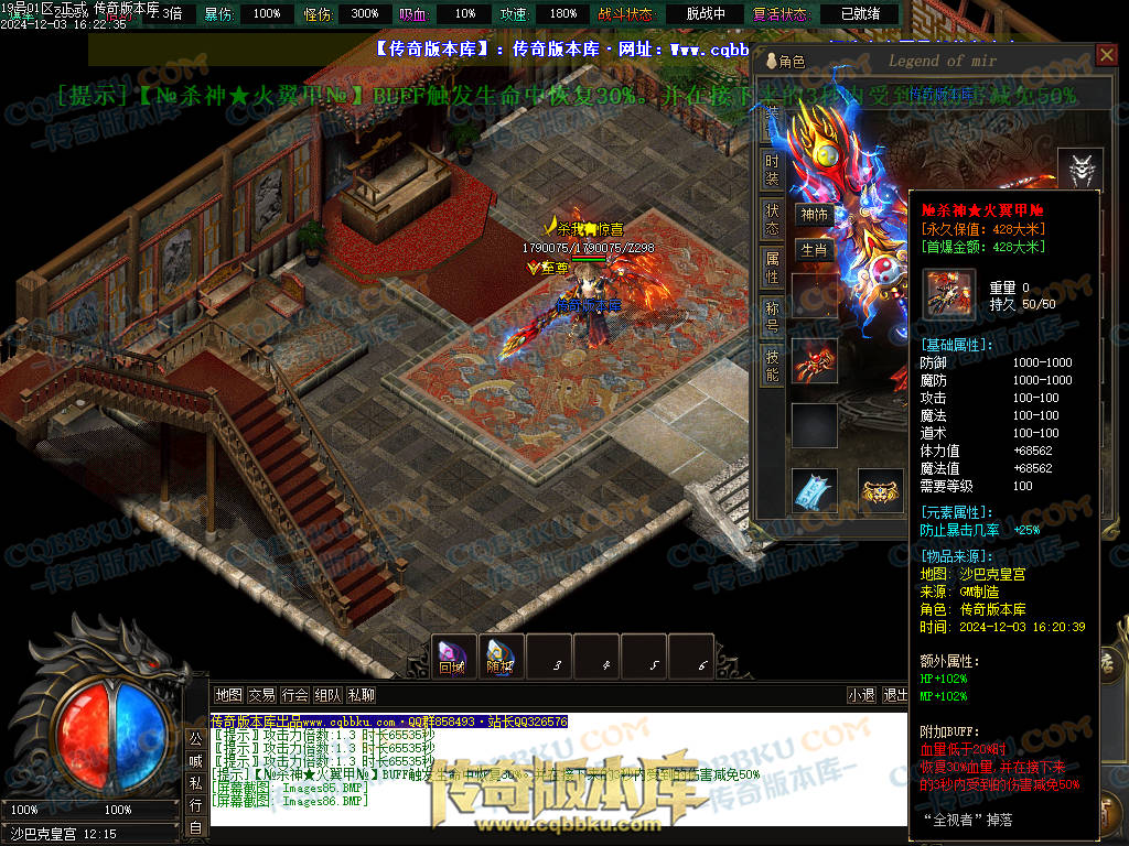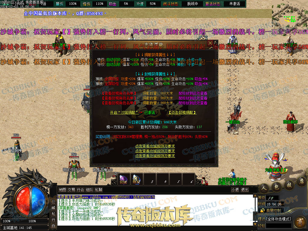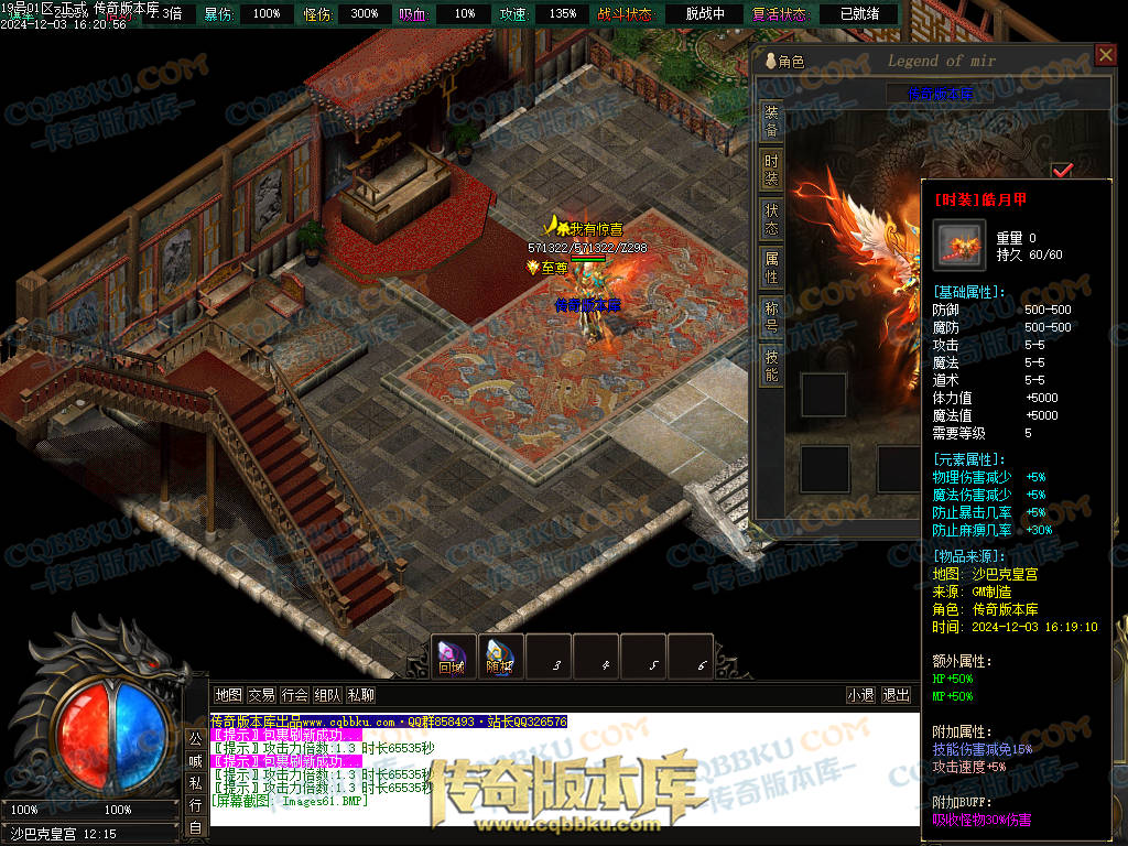 4、土豪: 453元档 (310元宝+143大米) → 赞助会员 + 狂暴之力 + 沙捐榜一 + 2大陆称号大师(2400个传奇之星) + 攻速斧头MAX(2大陆提升) +神魔 + 减伤时装(抗怪必备)