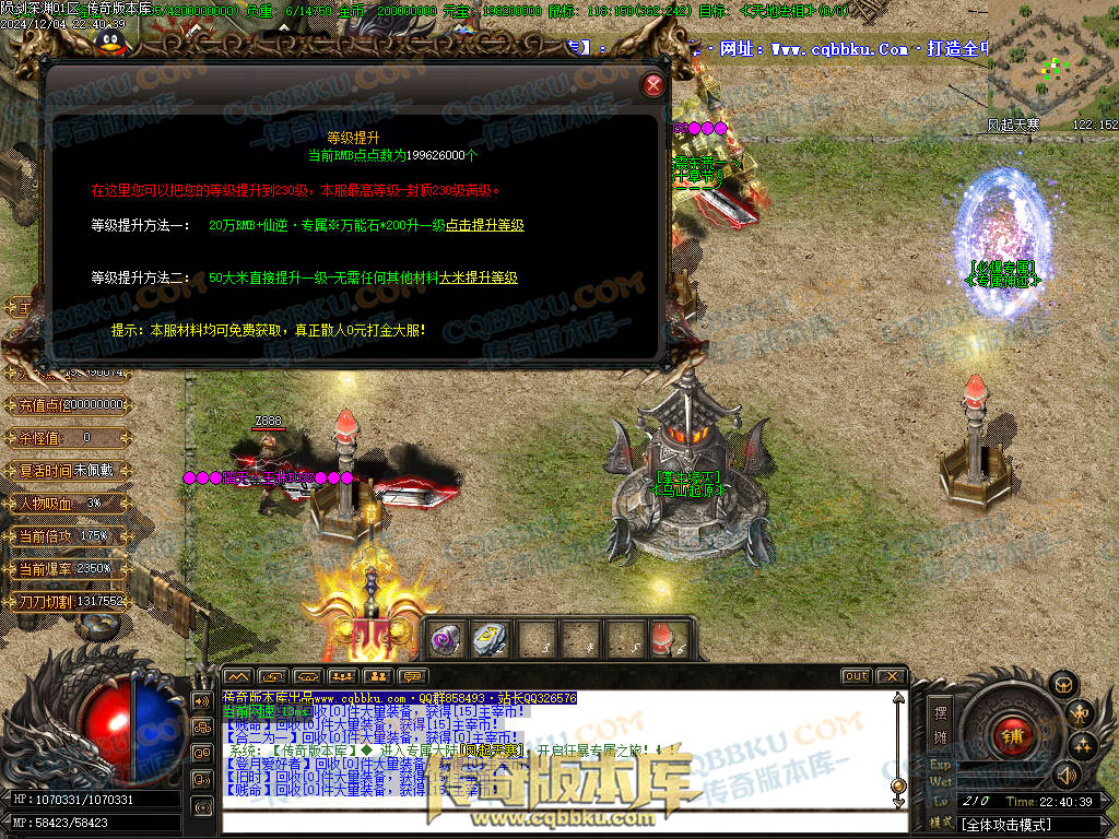 下一篇: 01-239独家殺无尽单职业专属传奇版本-天道祝福-打包特权-爆率之王-自动拾取-大背包