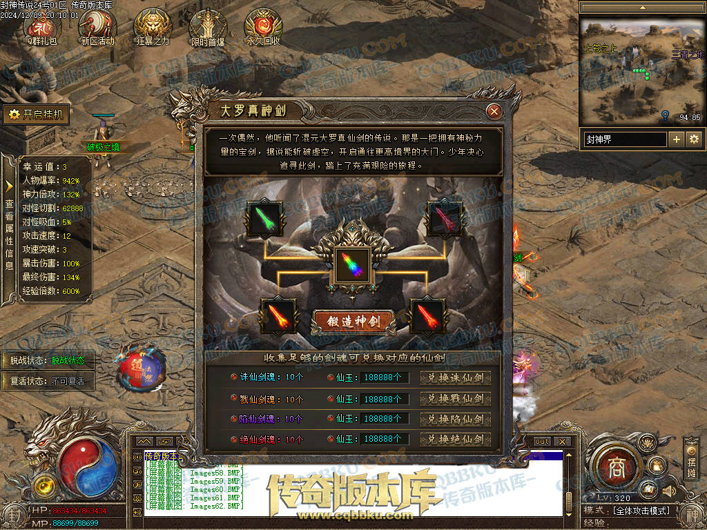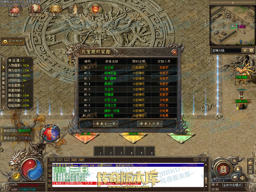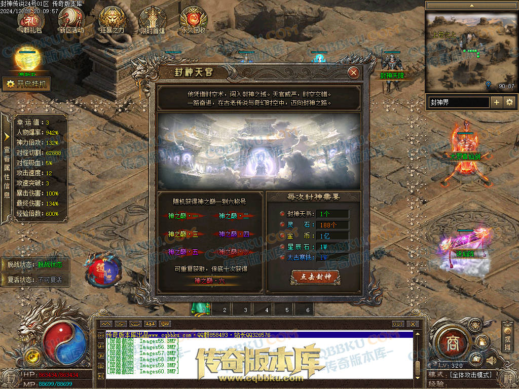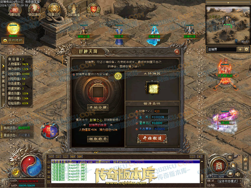 - 专属装备:封神传说版本中,有许多专属装备,这些装备不仅外观炫酷,而且属性强大。玩家可以通过挑战 boss、完成任务和参加活动等方式获得这些专属装备。例如,有一套名为 “封神套装” 的专属装备,它拥有强大的属性加成和独特的技能效果,是玩家们追求的终极目标之一。