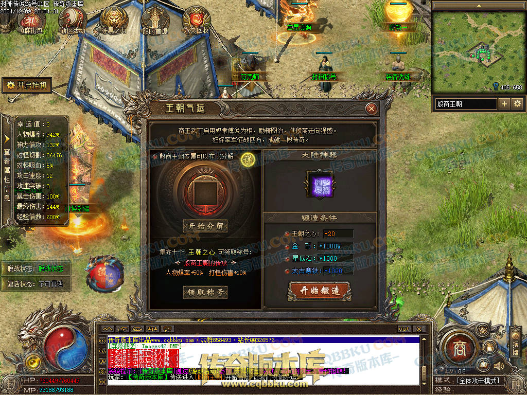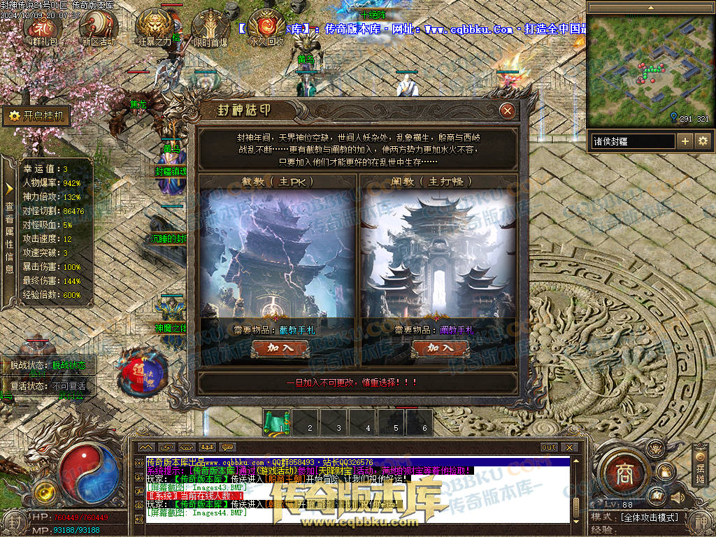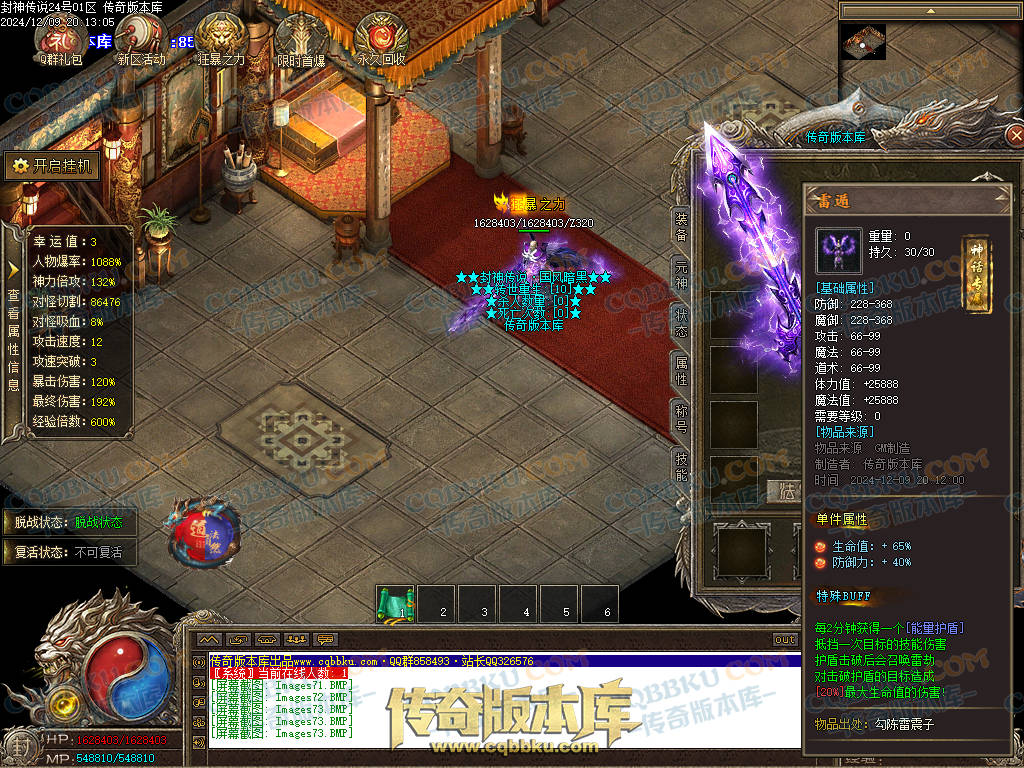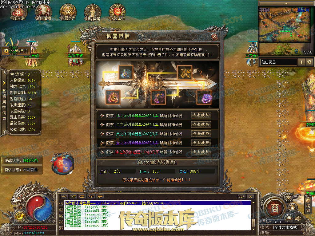 - 专属装备:封神传说版本中,有许多专属装备,这些装备不仅外观炫酷,而且属性强大。玩家可以通过挑战 boss、完成任务和参加活动等方式获得这些专属装备。例如,有一套名为 “封神套装” 的专属装备,它拥有强大的属性加成和独特的技能效果,是玩家们追求的终极目标之一。