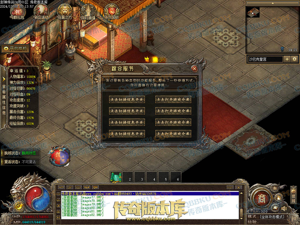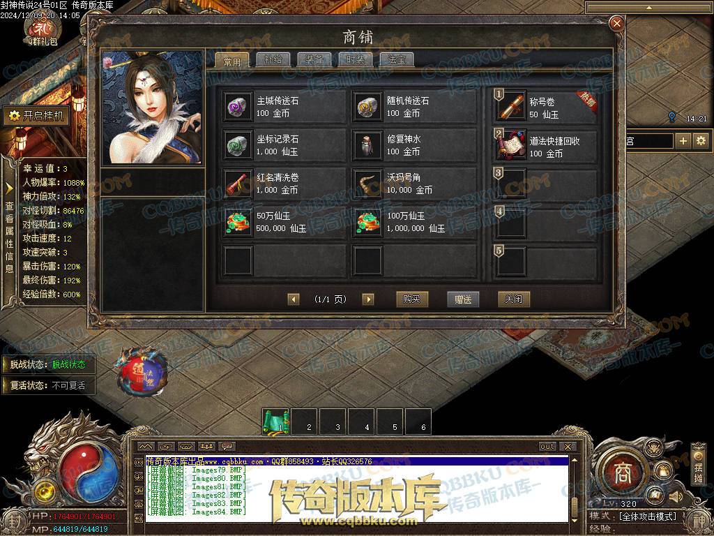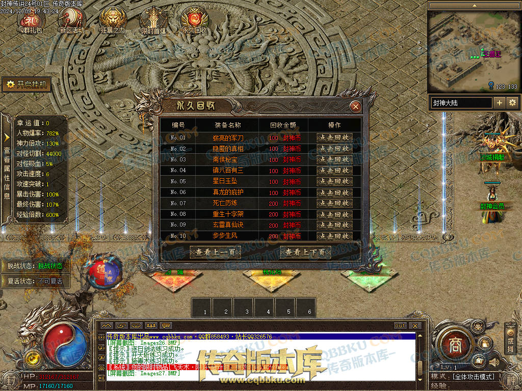 本文标题:01-246独家修复封神传说剧情专属神器单职业传奇版本-元神唤醒-大背包-自动拾取