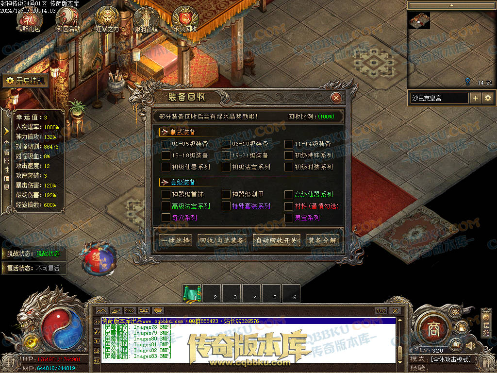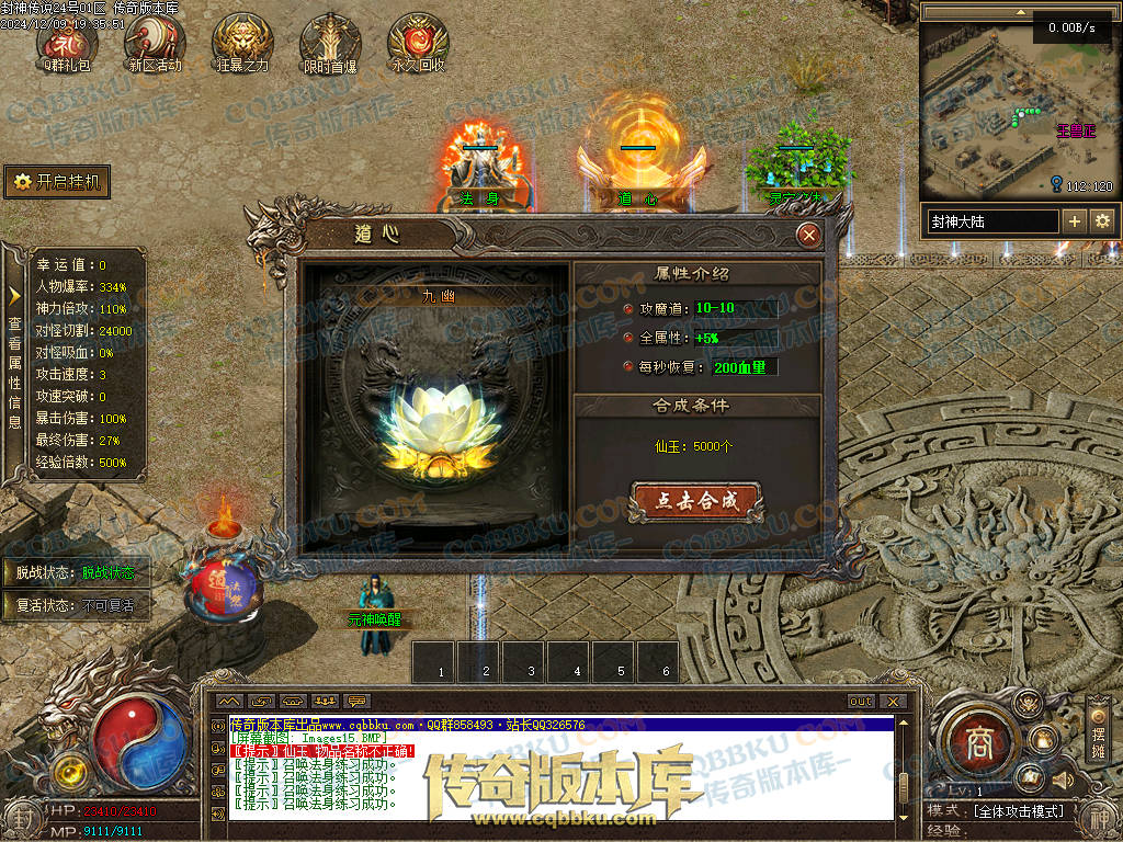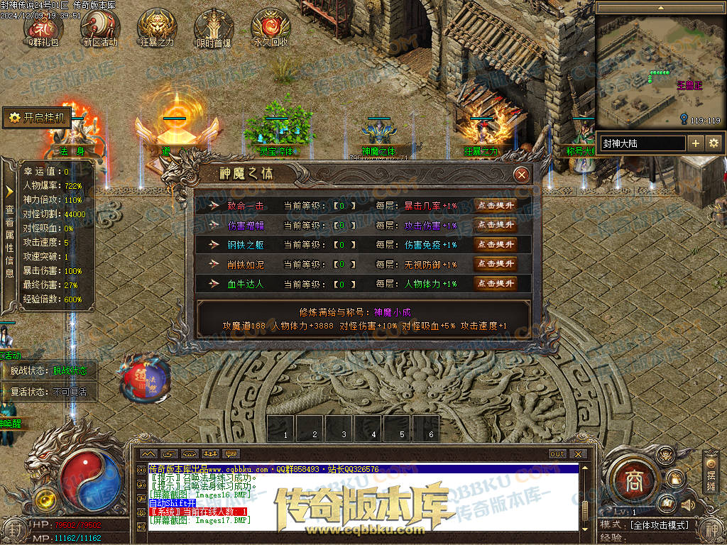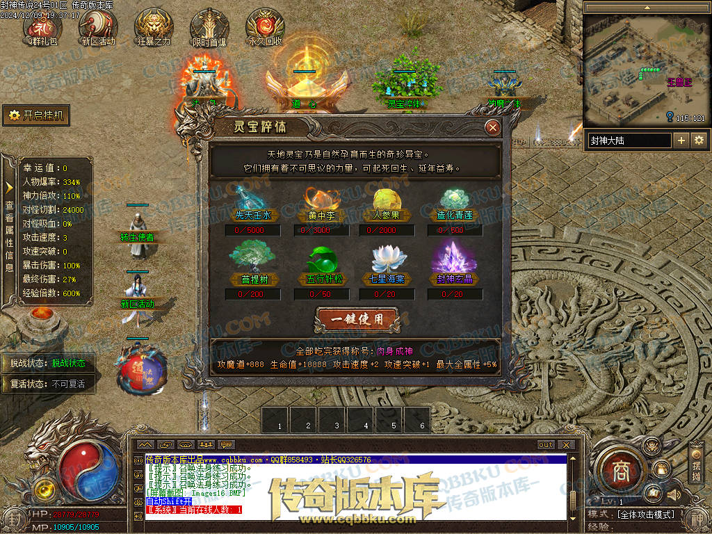 封神传说剧情专属神器单职业传奇版本-元神唤醒-大背包-自动拾取