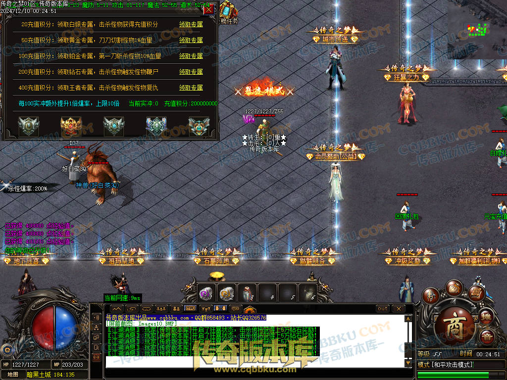 实冲用的是U31变量,每100实冲,额外增加100%(1倍)爆率,10倍封顶,也就是400顶赞,可领完所有背包专属,1000充值满爆率,爆率文件自行调整(重新写了爆率文件,加了真假爆率,方便坑钱)