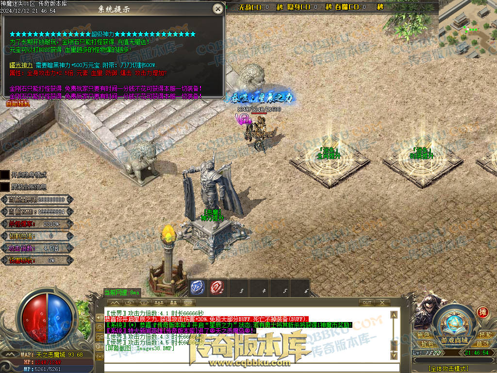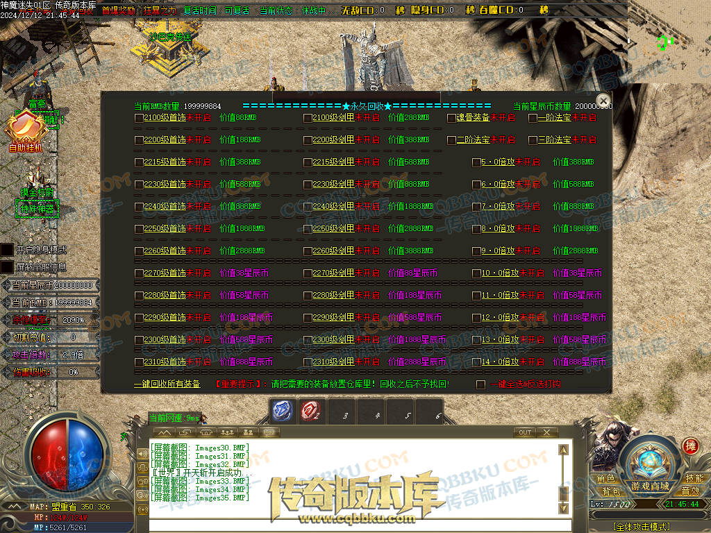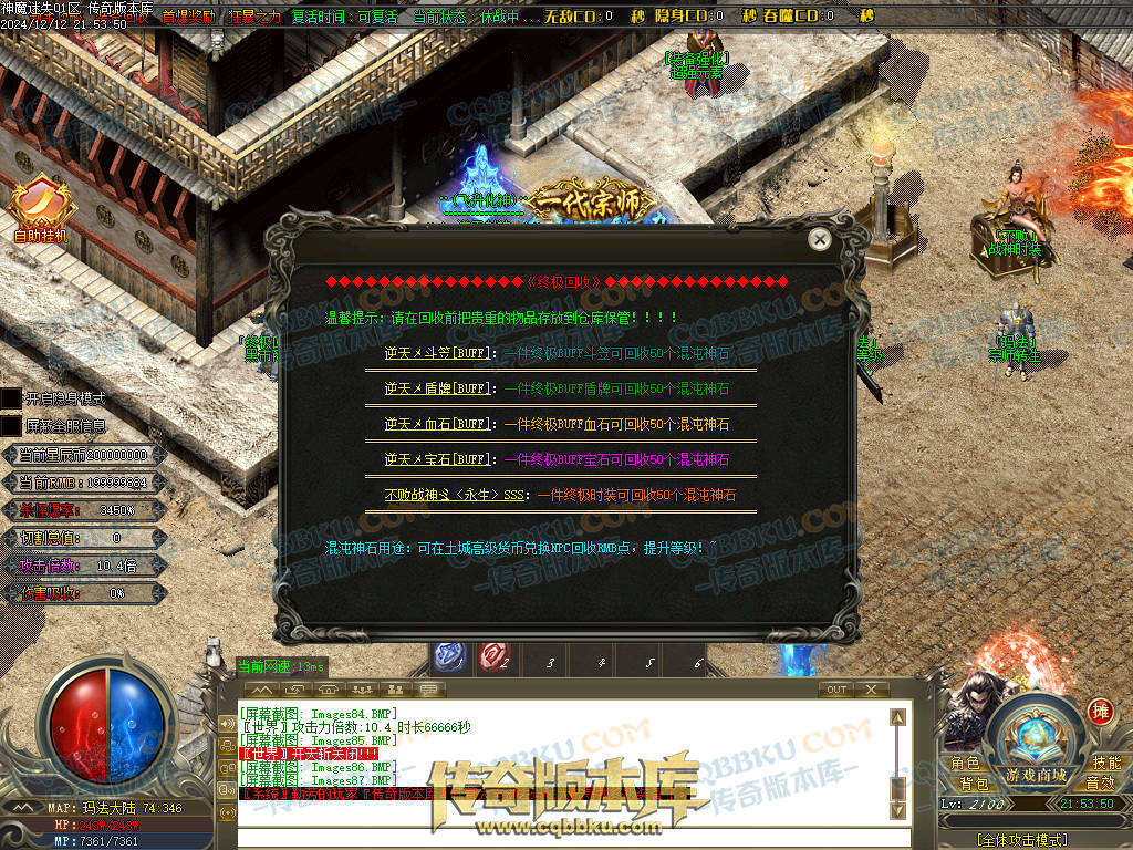 【注意:随身服务--仓库打包--一定要勾选装备回收里面的装备存仓以及永久回收面板里面的对应装备取消打勾,误操作后是不予找回的】【充米只能保证起步快,打装备看运气,人人都有机会打到终极装备,绿色公平,充米不打怪被虐哭别骂街,一切靠打!!!】