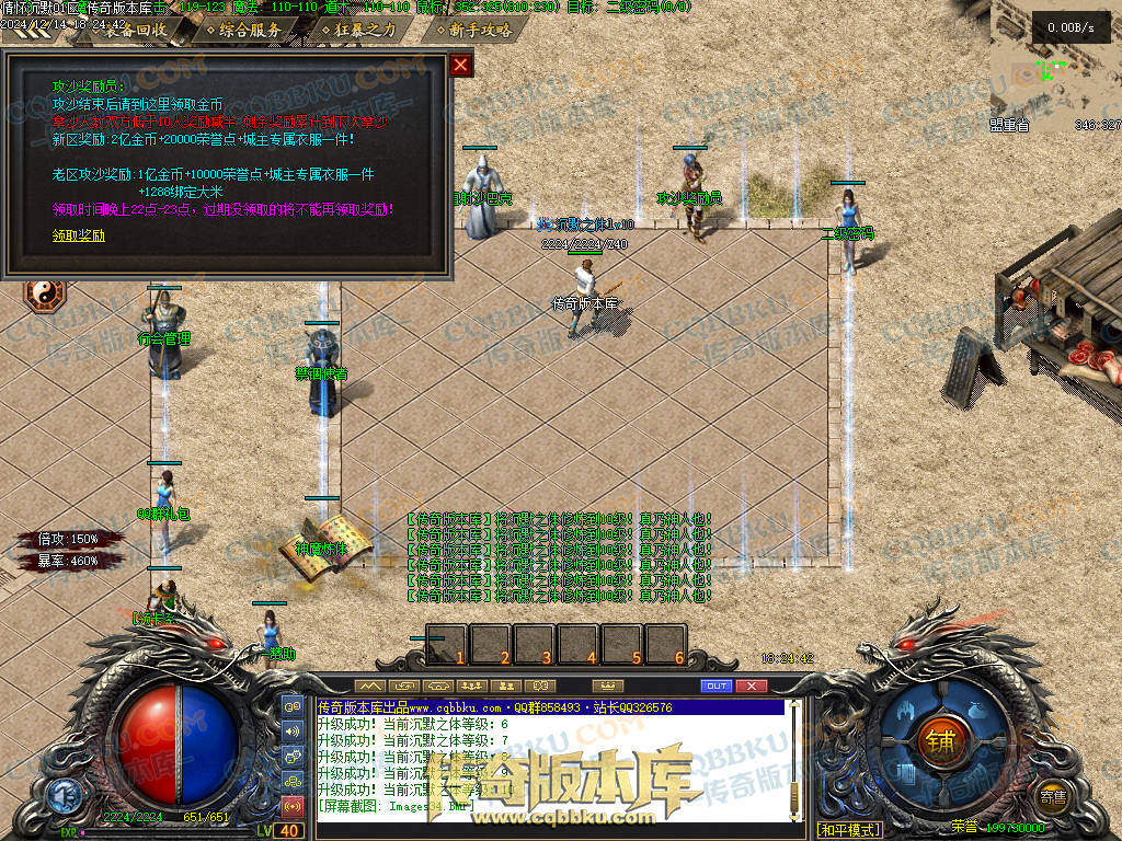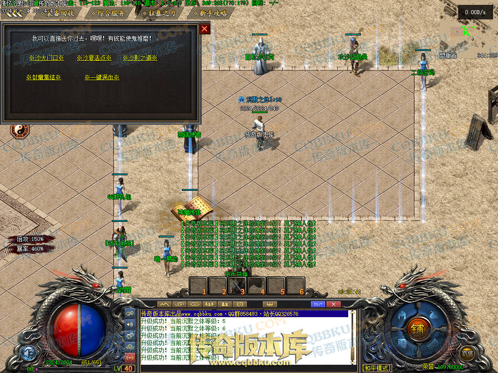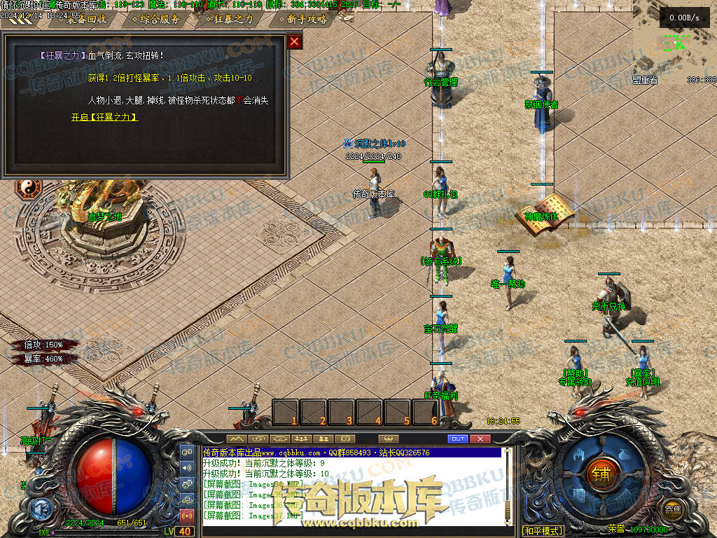 7:分别增加了 一套终极底功装备 和高攻装备(版本底功装备爆率比高攻稍高) 增加了三大陆一套终极时装合成 3大陆增加了6张地图分别有专爆高攻和底功的终极装备地图