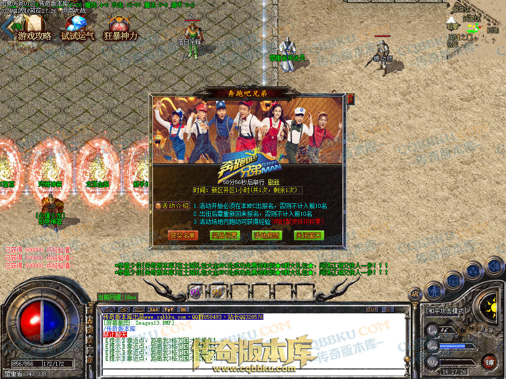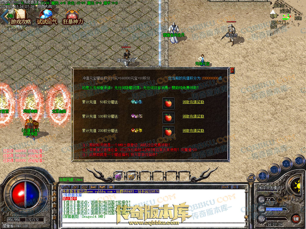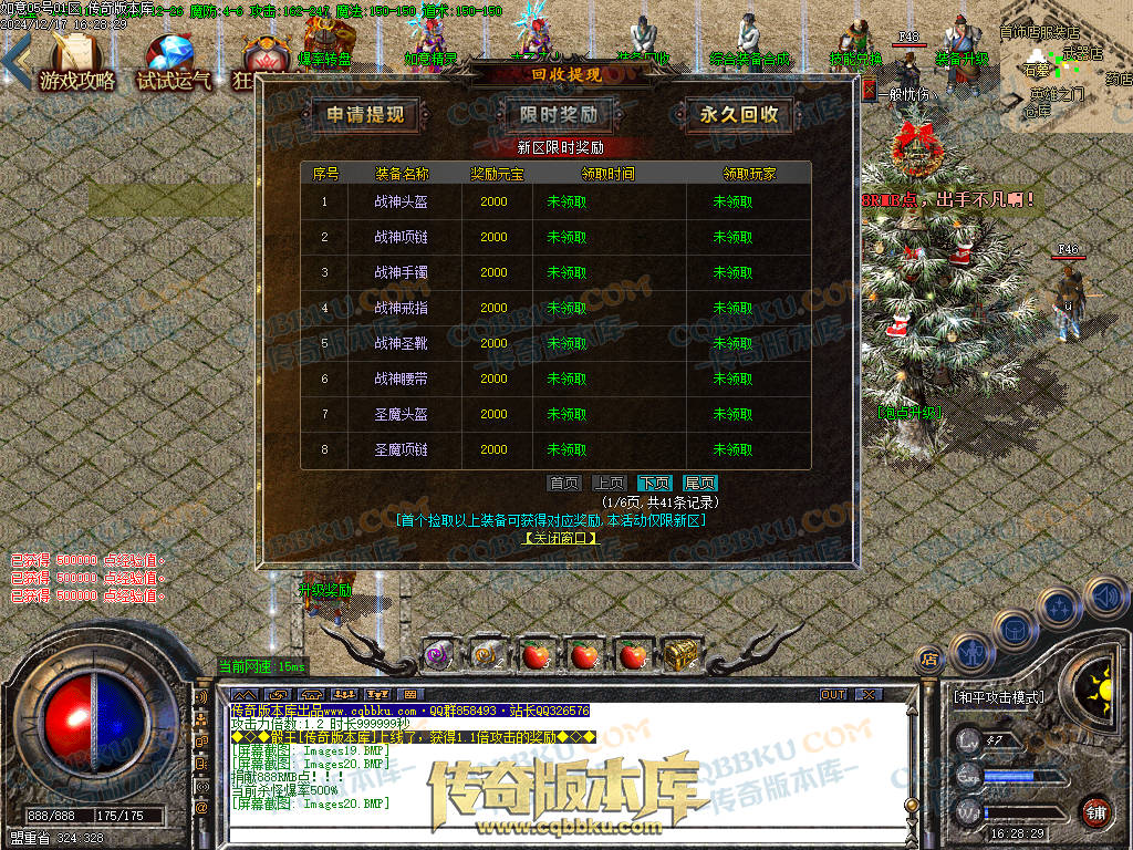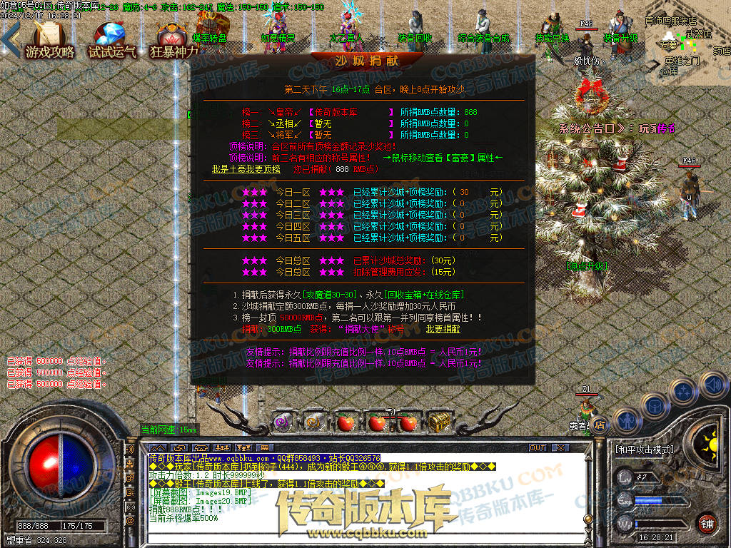 300米点捐个沙捐领取永久在线回收宝箱。88888元宝开个狂暴。200米点开个1.1攻击骰王