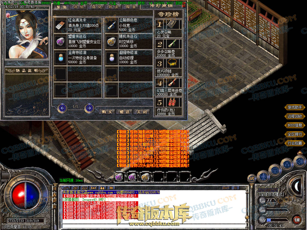 10.本服属于仿盛大长久复古版本,装备爆率偏低,非快餐服,适合骨灰玩家养老!