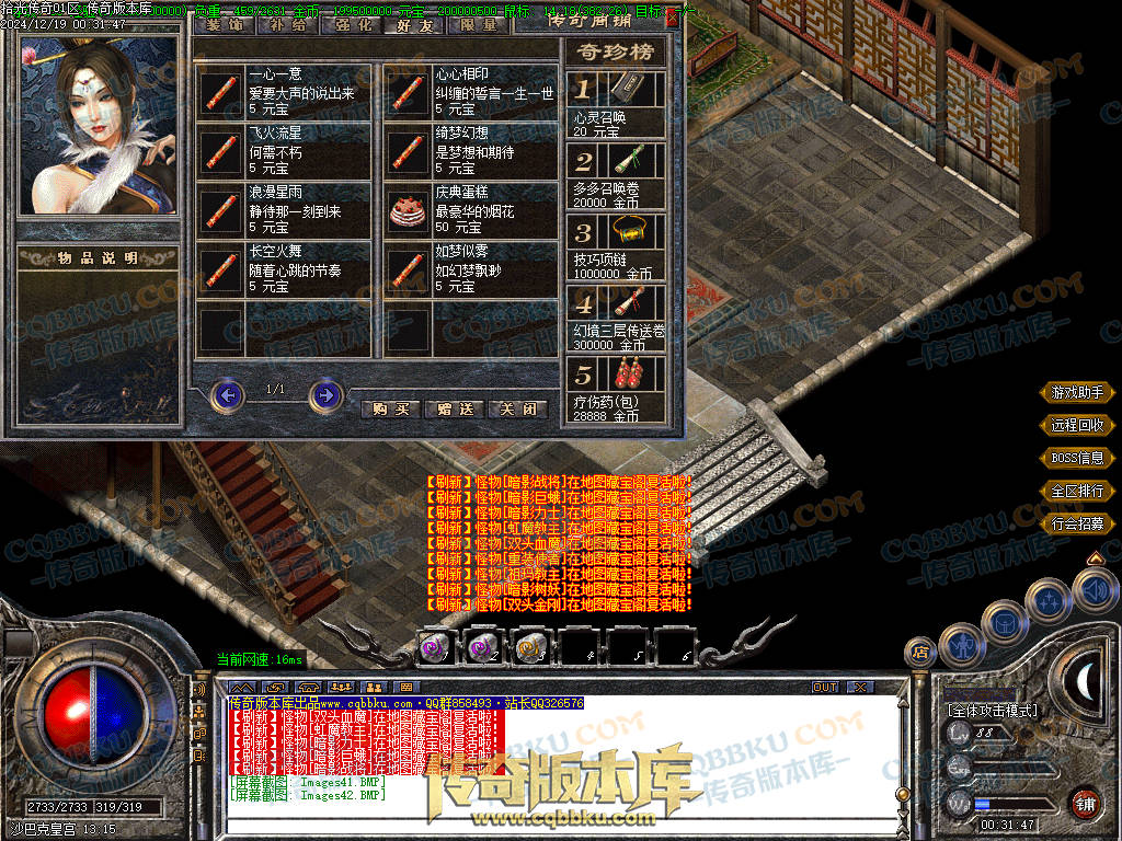 1.本服在1.76地图的基础上只增加了幻境,藏宝阁地图(1.1倍经验),删除苍月等多余地图.