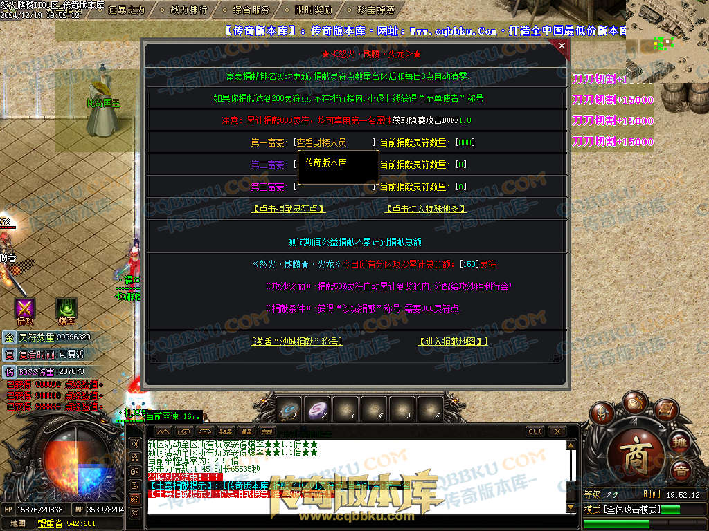 │土豪玩法 →赞助 + 沙捐 + 狂暴 + 终极称号 + 终极时装 + 秒怪神器(切割翻倍) │